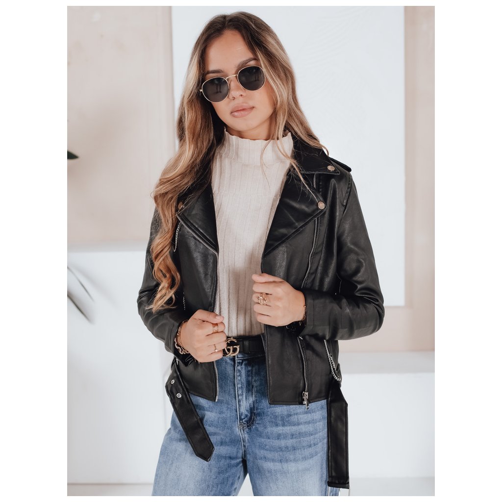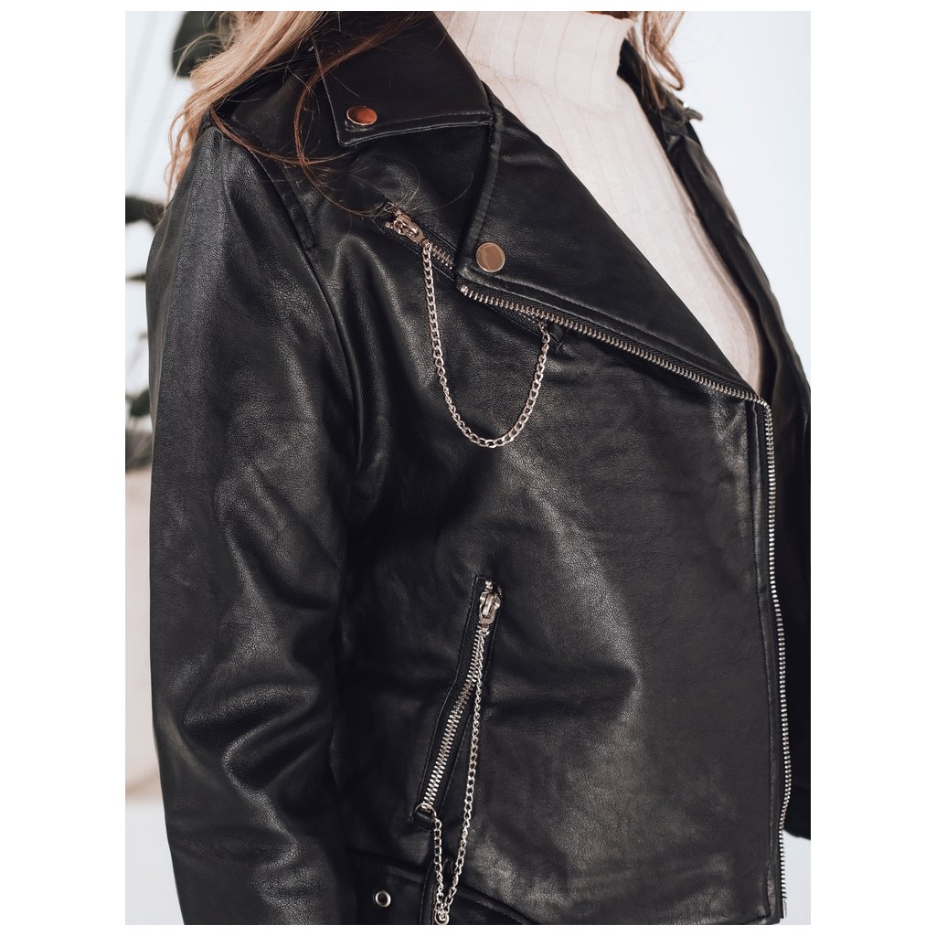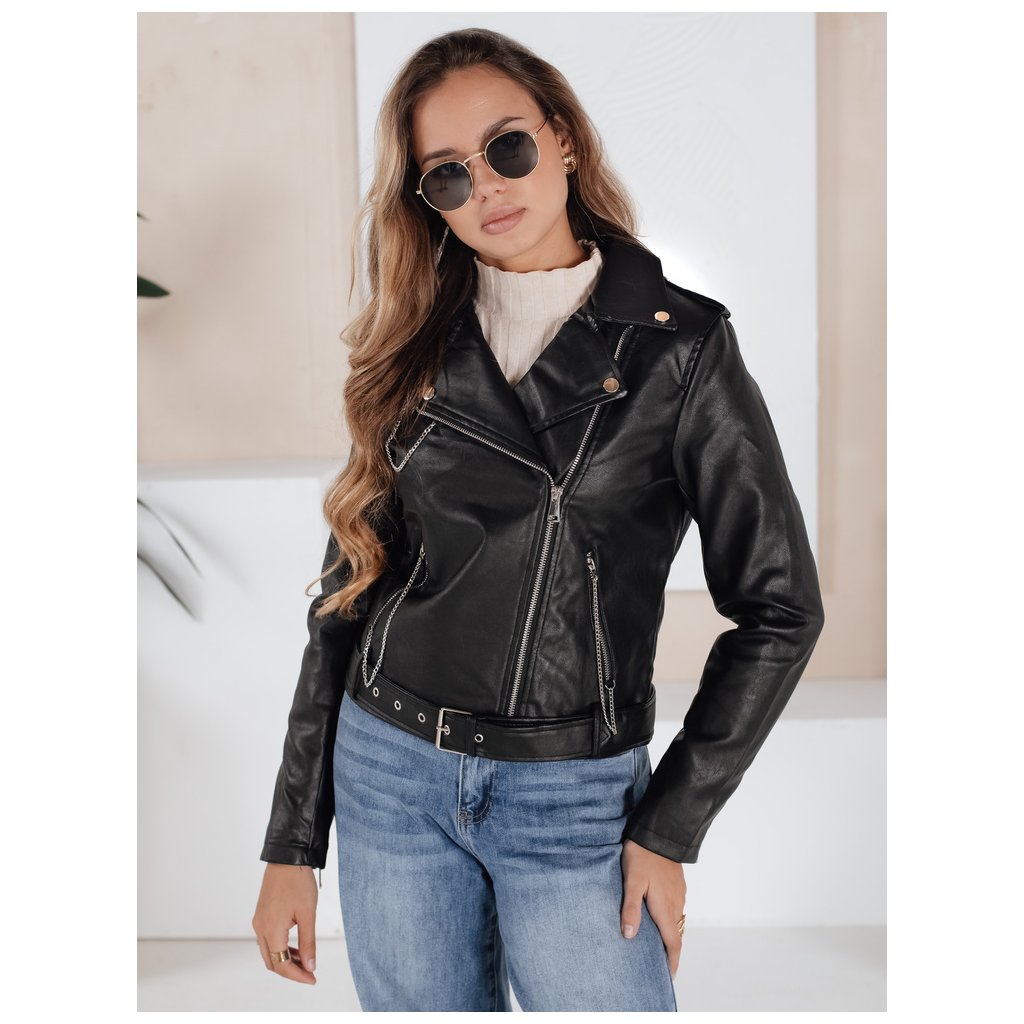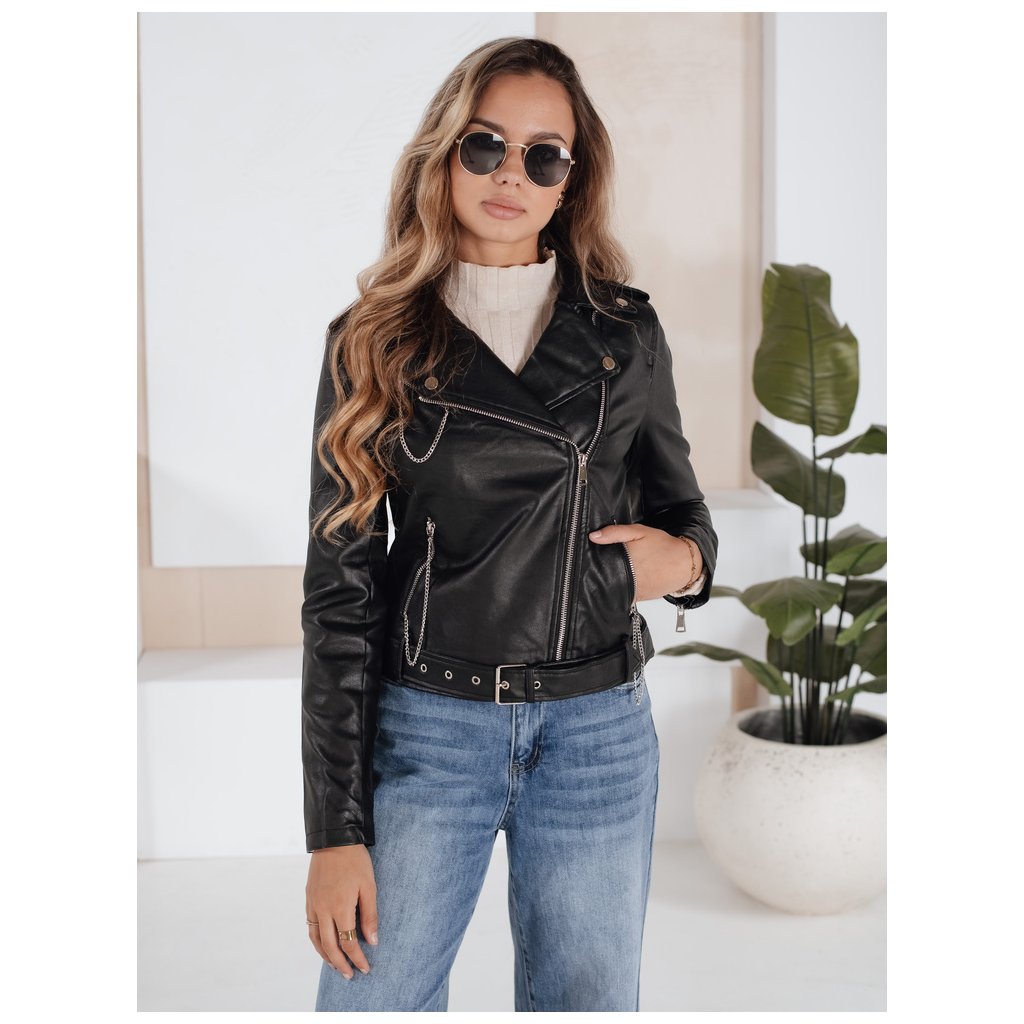 Dámská bunda Ramones z eko-kůže kombinuje klasický střih s moderním provedením. Asymetrické zapínání, široký límec s klopami a ozdobné kapsy na řetízku jí dodávají jedinečný vzhled. Přiléhavý střih a pas zdůrazňují siluetu, zatímco podšívka zajišťuje pohodlí v chladnějších dnech.