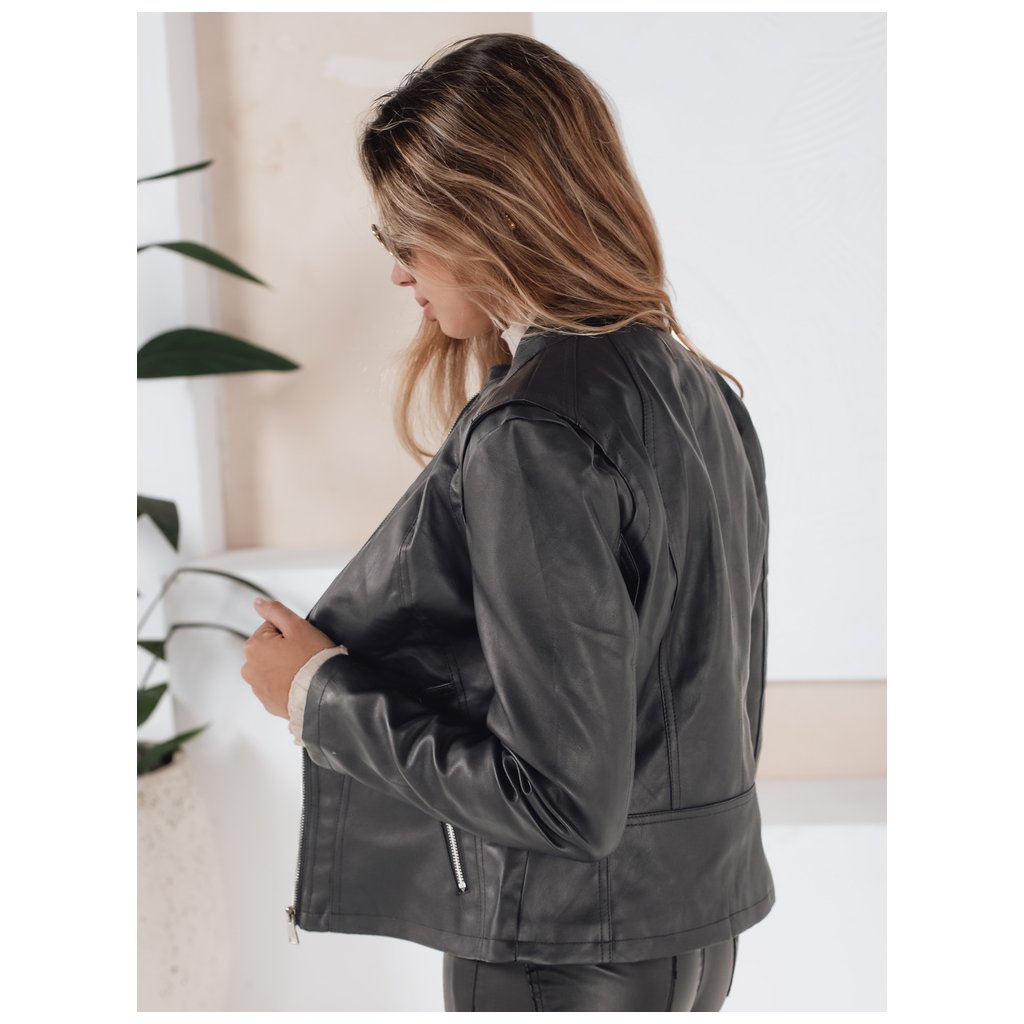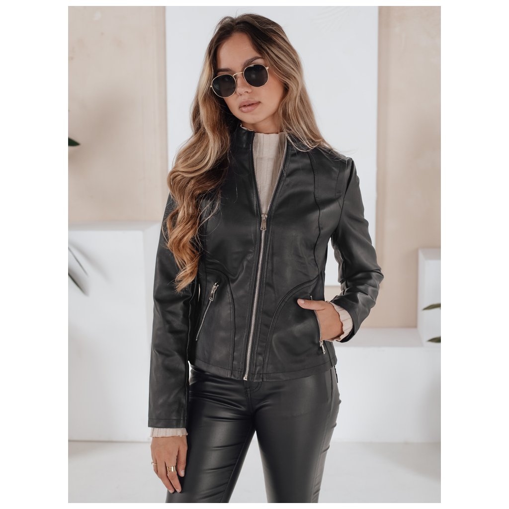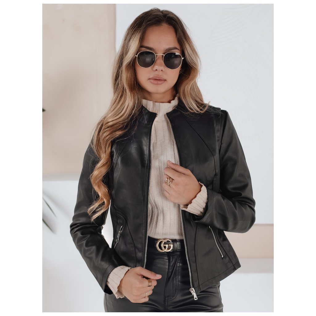 Stylová dámská přechodná bunda TY5201 vyrobená z vysoce kvalitní ekokůže, ideální pro jarní a podzimní období. Úzký střih zdůrazňuje siluetu, zatímco stojáček dodává moderní nádech. Dvě boční kapsy na zip pro funkčnost a podšívka pro větší pohodlí.