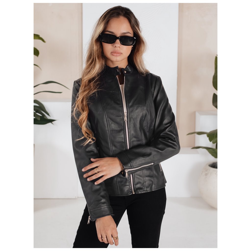 Tato dámská přechodná bunda vyrobená z vysoce kvalitní ekokůže je ideální pro ženy, které oceňují minimalistický styl s nádechem rocku. Rovný střih se stojáčkem a zipem a praktické detaily, jako jsou kapsy na zip a rozparky na rukávech, vytvářejí moderní a nadčasový vzhled. Podšívka zajišťuje pohodlné nošení pro každodenní outfity.