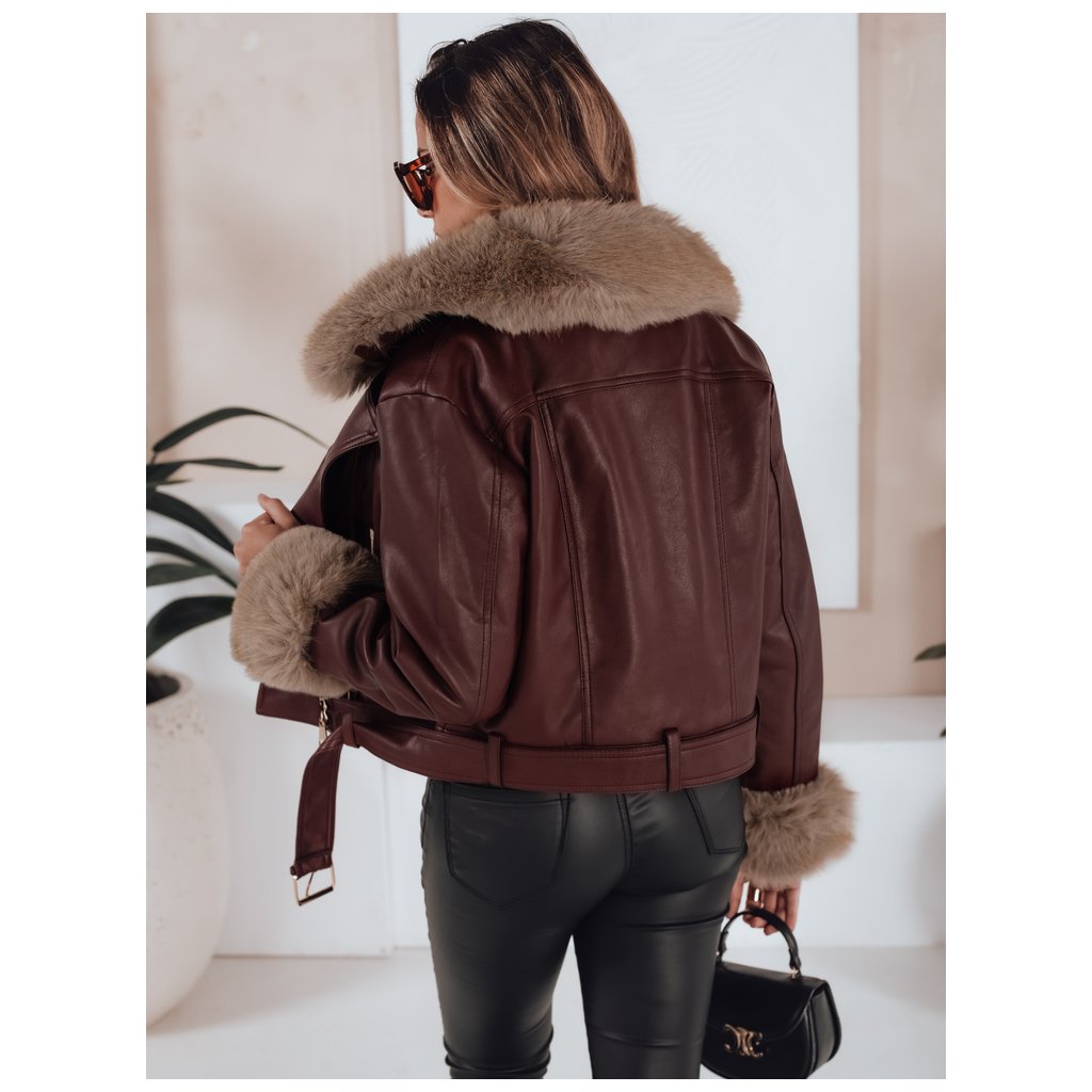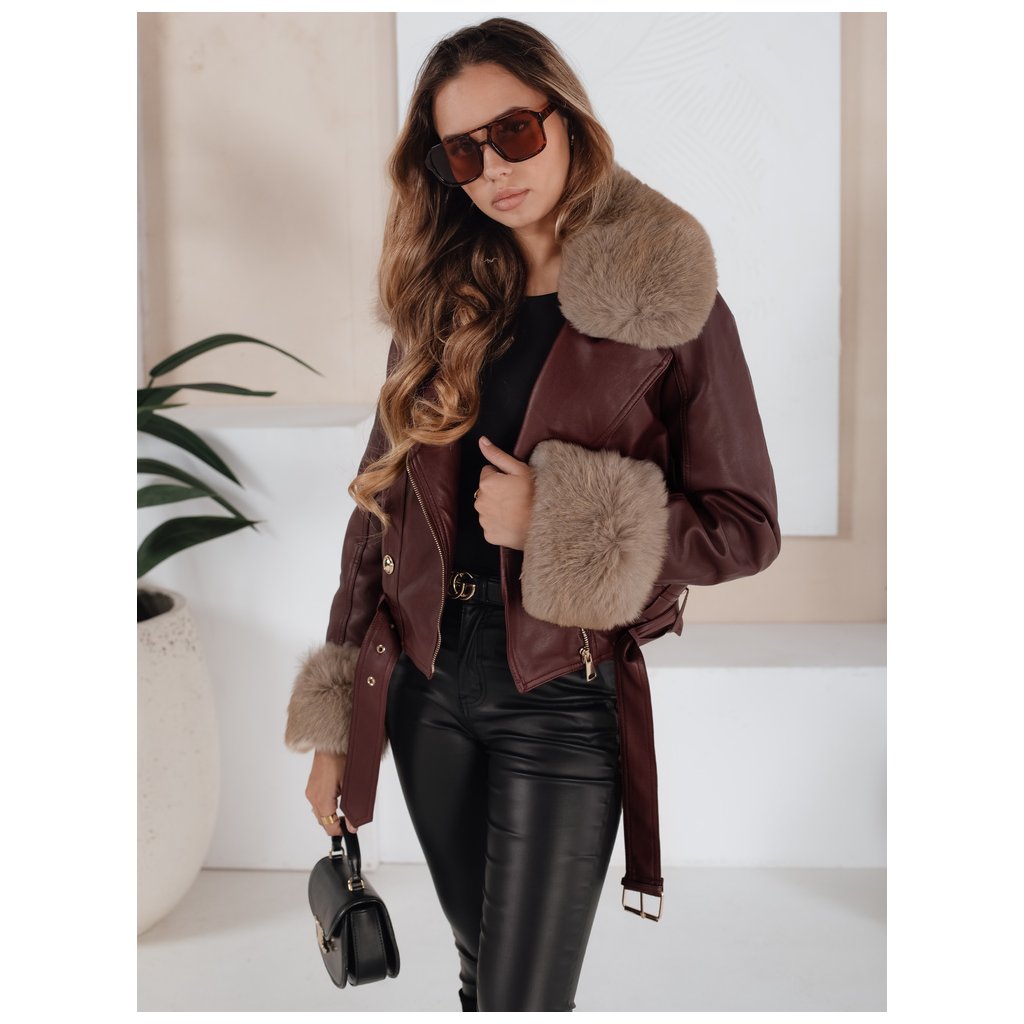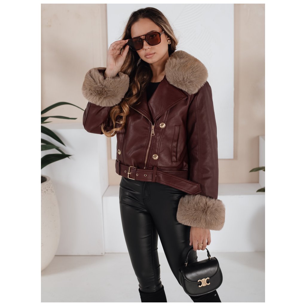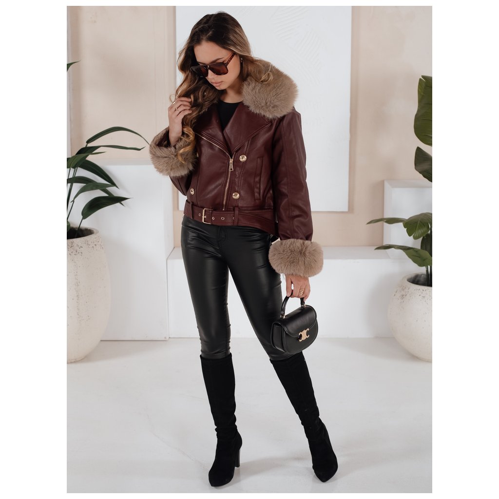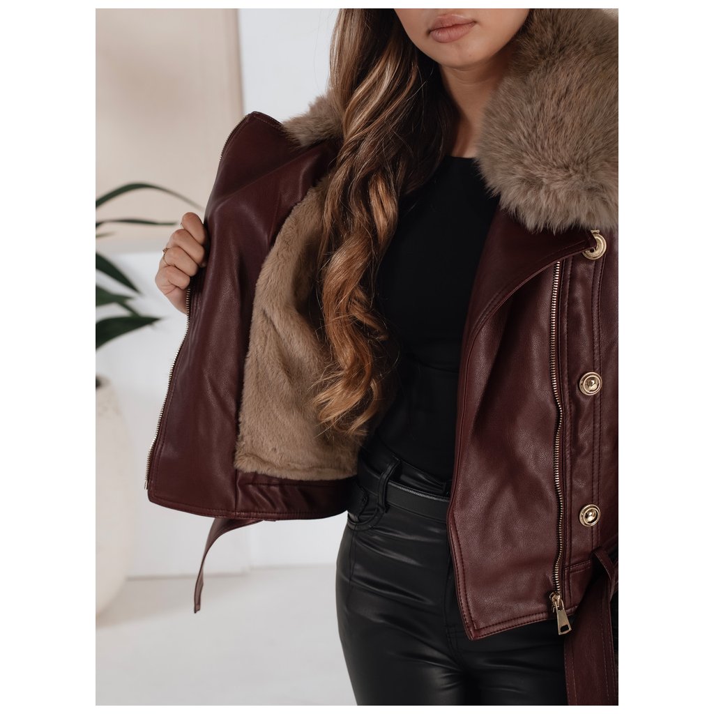 Dámská zimní kožená bunda s kožešinou vínová Dstreet TY5208