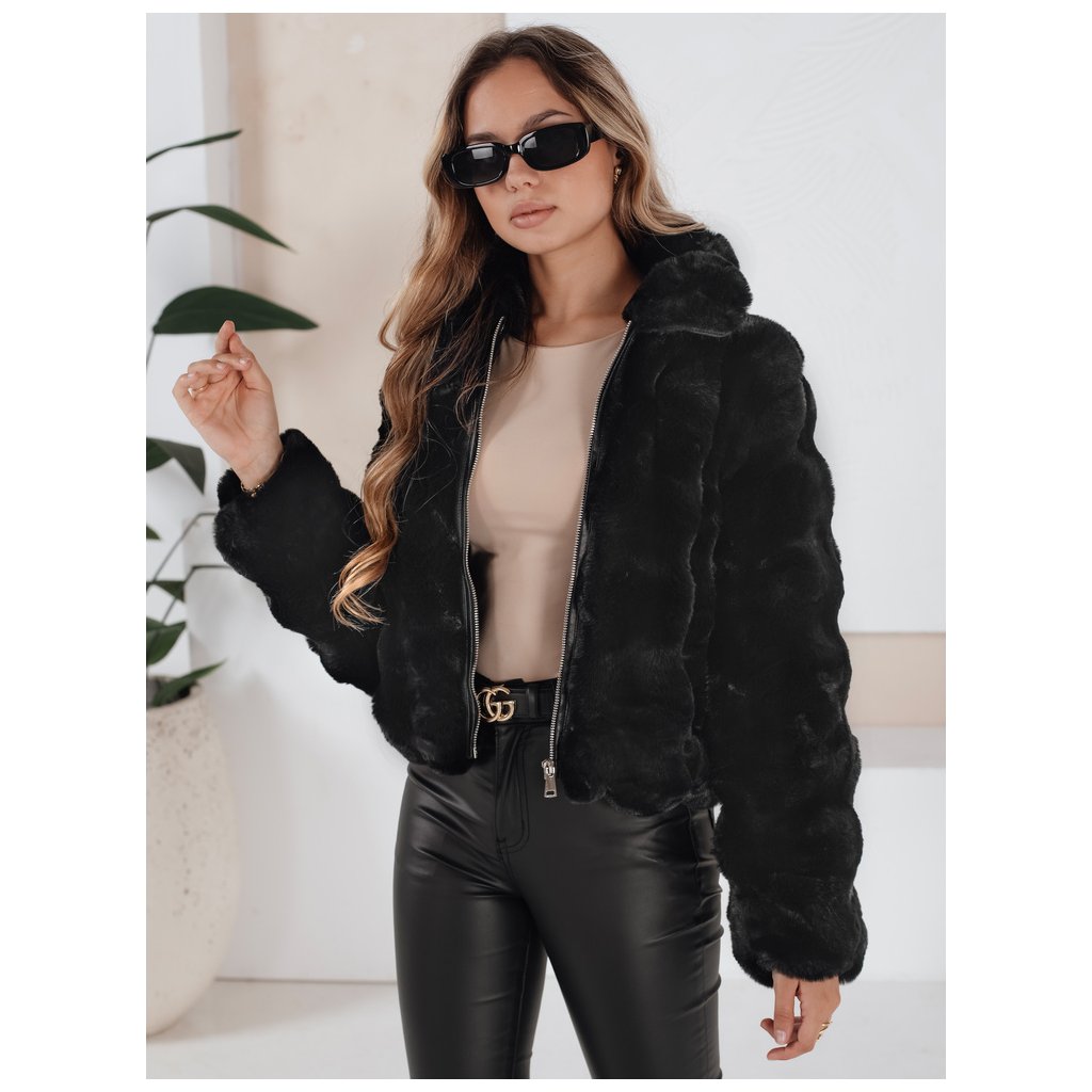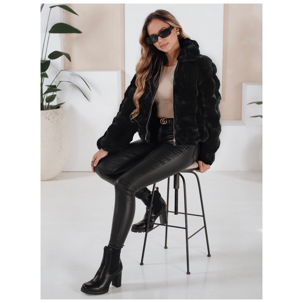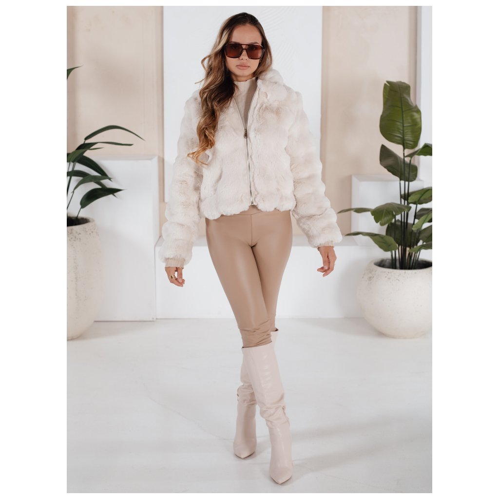 Tato dámská zimní bunda s kožešinou kombinuje praktičnost a eleganci. Její měkká, zateplená podšívka a kožešinový lem poskytují pohodlí v chladnějších dnech. Krátký střih zdůrazňuje siluetu a zapínání na zip je pohodlné pro každodenní nošení.