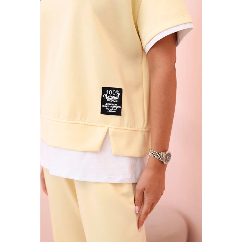 Dámská máslová souprava s krátkým rukávem a kalhotami žlutý
