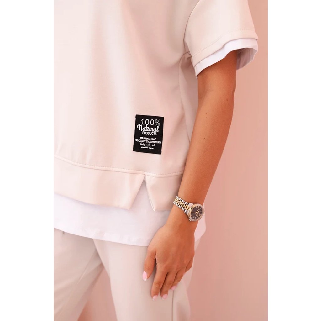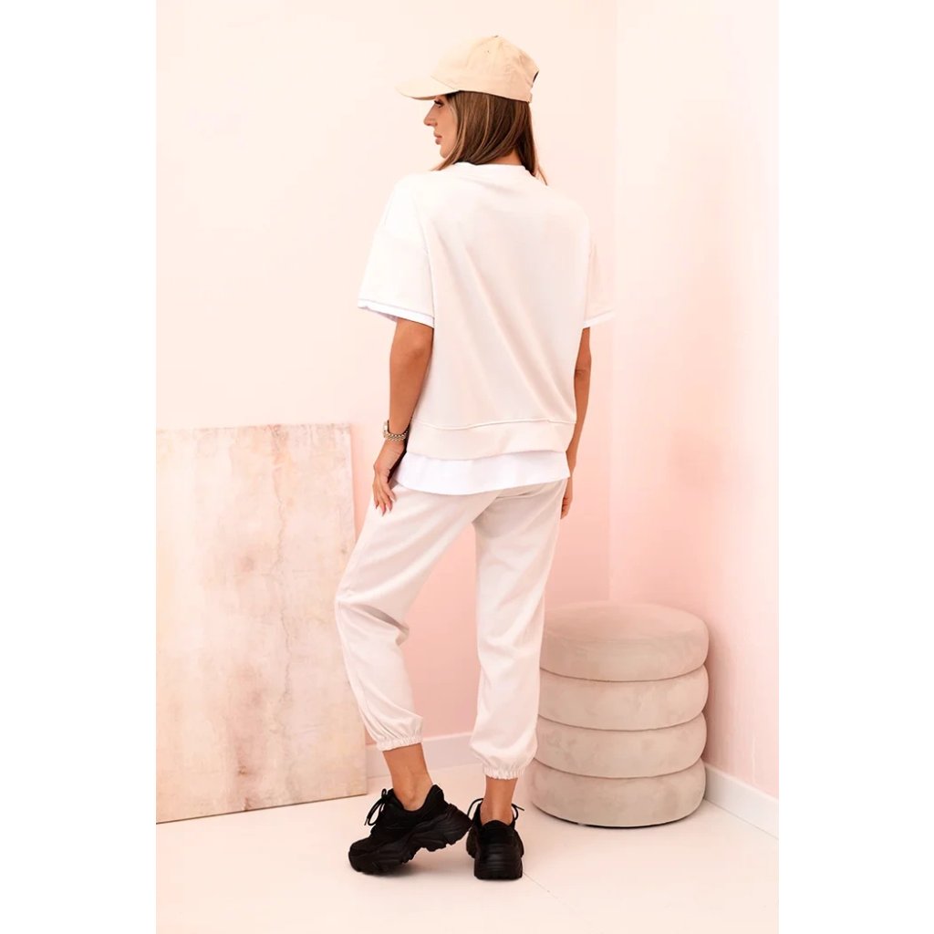 Tato dámská tepláková souprava je ideální volbou pro ženy, které si cení pohodlí, módního vzhledu a funkčnosti v každodenním oblékání. Skládá se z volné halenky s krátkým rukávem a módním dvojitým lemem a pohodlných kalhot s elastickým pasem a šňůrkou, díky čemuž se perfektně přizpůsobí postavě. Materiál s příměsí elastanu zajišťuje pružnost a pohodlí po celý den a moderní střih zaručuje, že souprava bude skvělá jak na domácí relax, tak na procházku či setkání s přáteli. Ležérní styl, univerzální použití a volný střih dělají z této soupravy skvělou volbu pro každou neformální příležitost. Italská výroba je zárukou kvality a důrazu na detaily. Velikost je univerzální a bude vyhovovat ženám velikostí S, M nebo L.