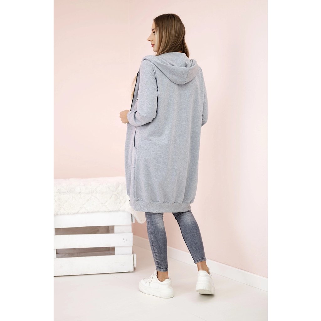 Tato delší dámská mikina s kapucí je ideální volbou na chladnější dny – spojuje pohodlí, funkčnost a módní městský styl. Je ušitá z měkké bavlny s přídavkem elastanu, což zajišťuje pohodlí při nošení a volnost pohybu po celý den. Mikina se zapíná na praktický zip a kapuce se šňůrkami jí dodává ležérní charakter. Velké našité kapsy vpředu jsou nejen stylové, ale také velmi funkční. Široké lemy na spodním okraji a na rukávech zajišťují, že mikina dobře sedí a chrání před chladem.
