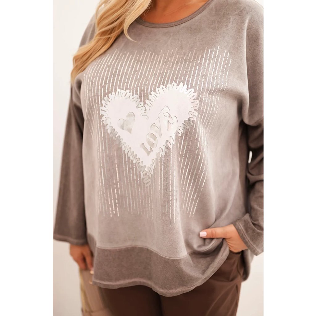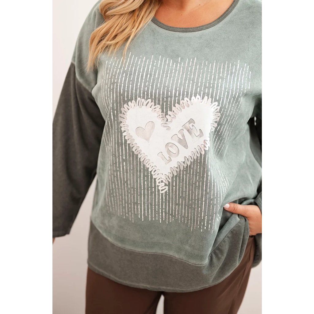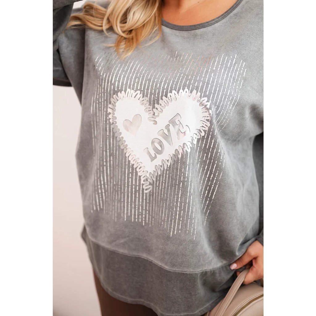 Přední část mikiny zdobí efektní potisk srdce s nápisem „LOVE“ a ozdobné, vertikální pruhy, které opticky zeštíhlují postavu. Model má delší zadní část a regulovatelné šňůrky, které umožňují přizpůsobení střihu podle vlastních potřeb. Volnější střih zajišťuje svobodu pohybu a skvěle maskuje nedokonalosti postavy.