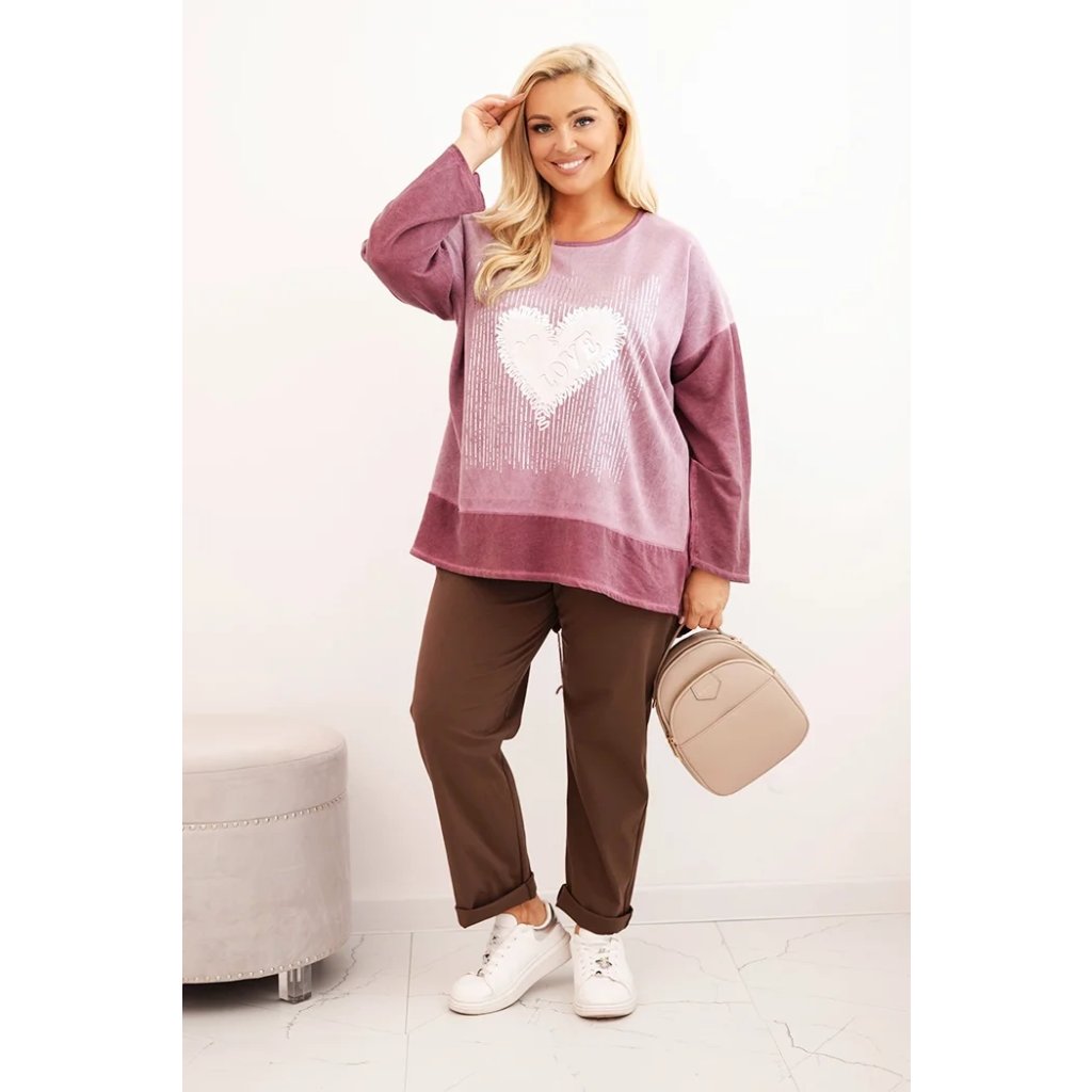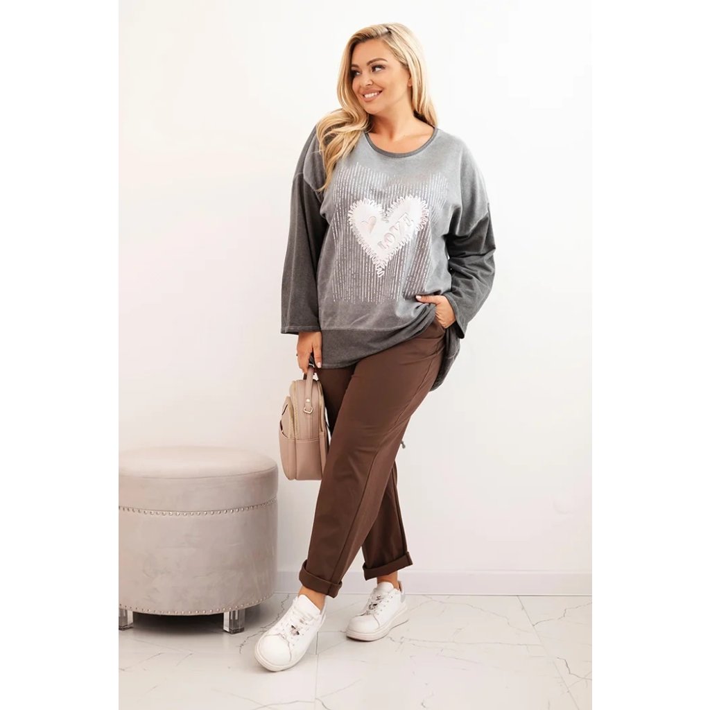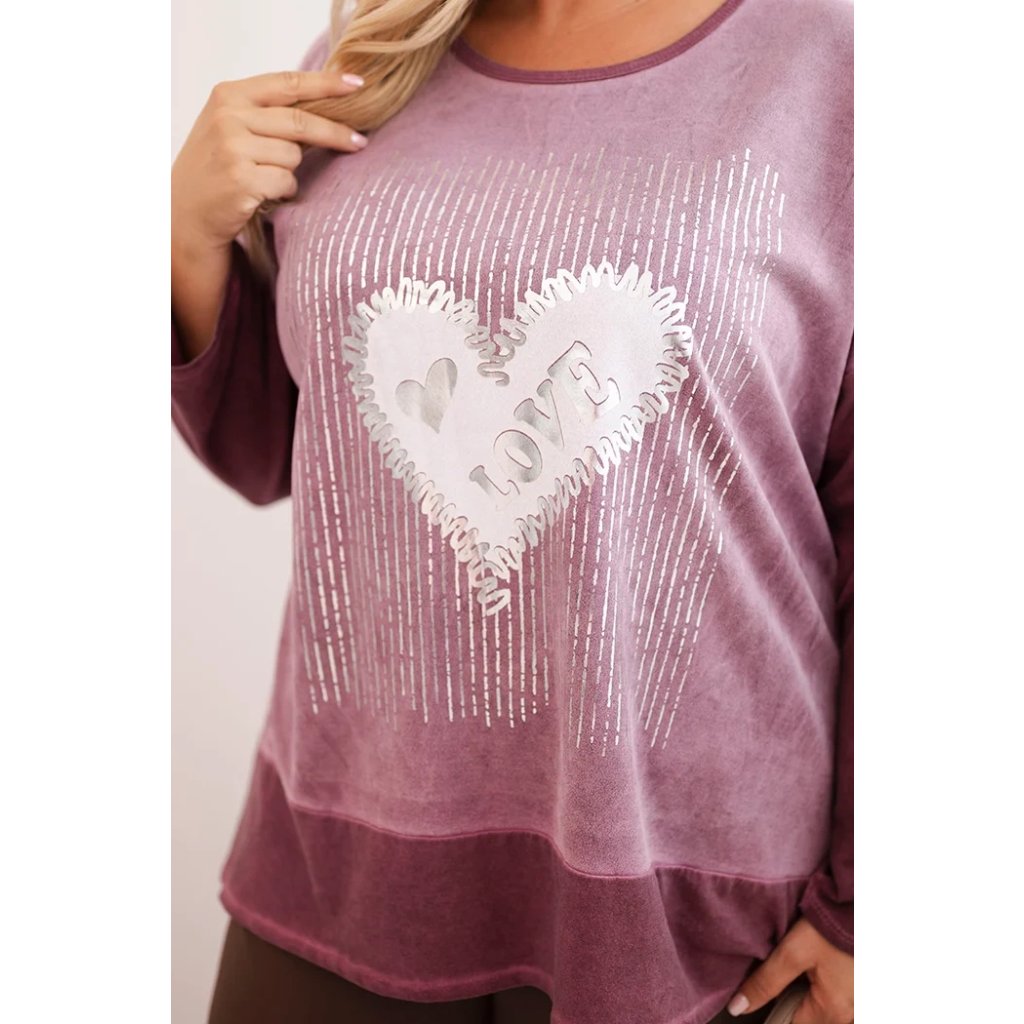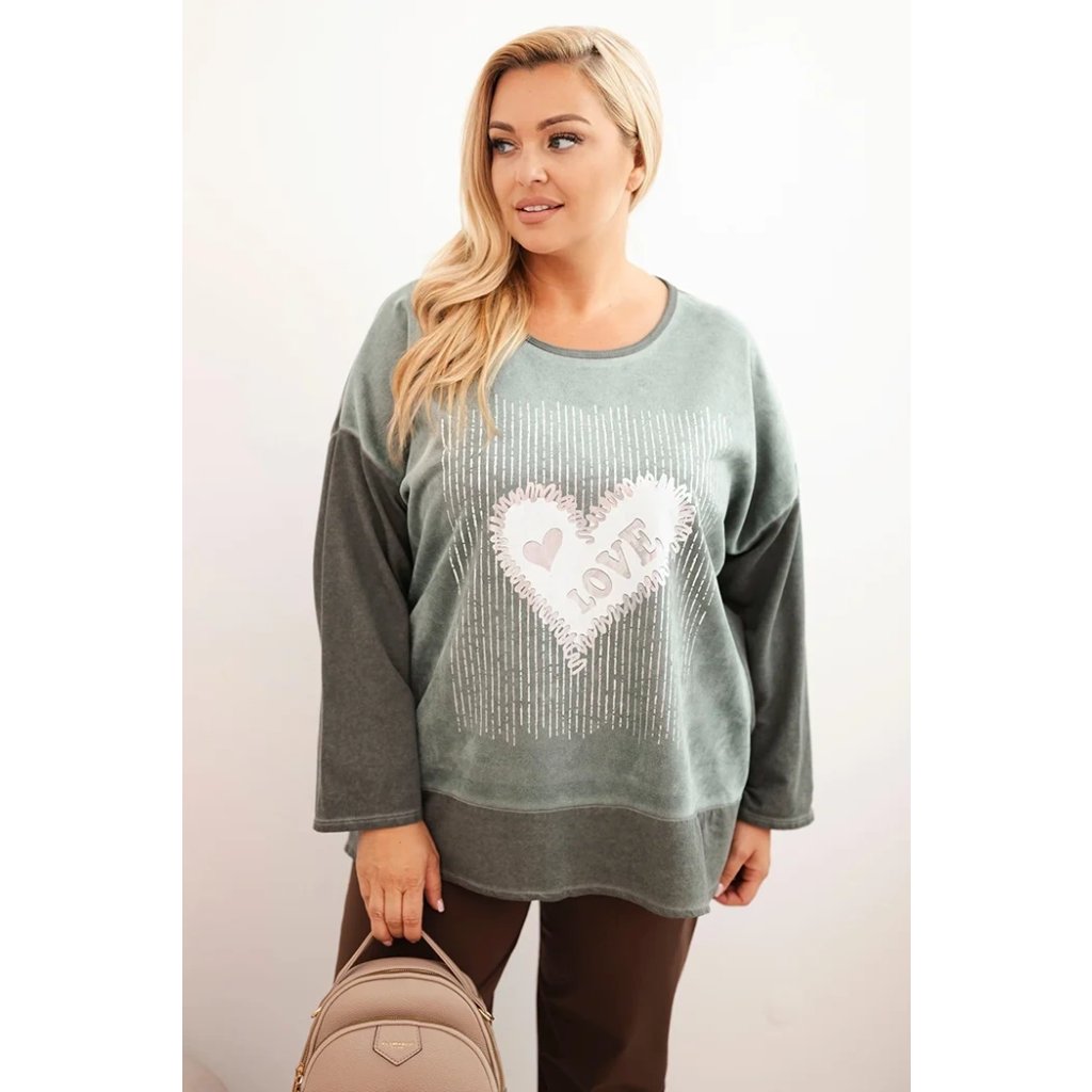 Přední část mikiny zdobí efektní potisk srdce s nápisem „LOVE“ a ozdobné, vertikální pruhy, které opticky zeštíhlují postavu. Model má delší zadní část a regulovatelné šňůrky, které umožňují přizpůsobení střihu podle vlastních potřeb. Volnější střih zajišťuje svobodu pohybu a skvěle maskuje nedokonalosti postavy.
