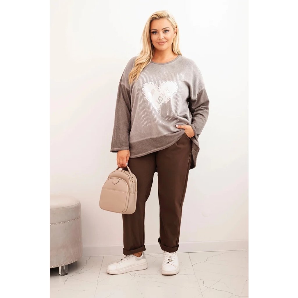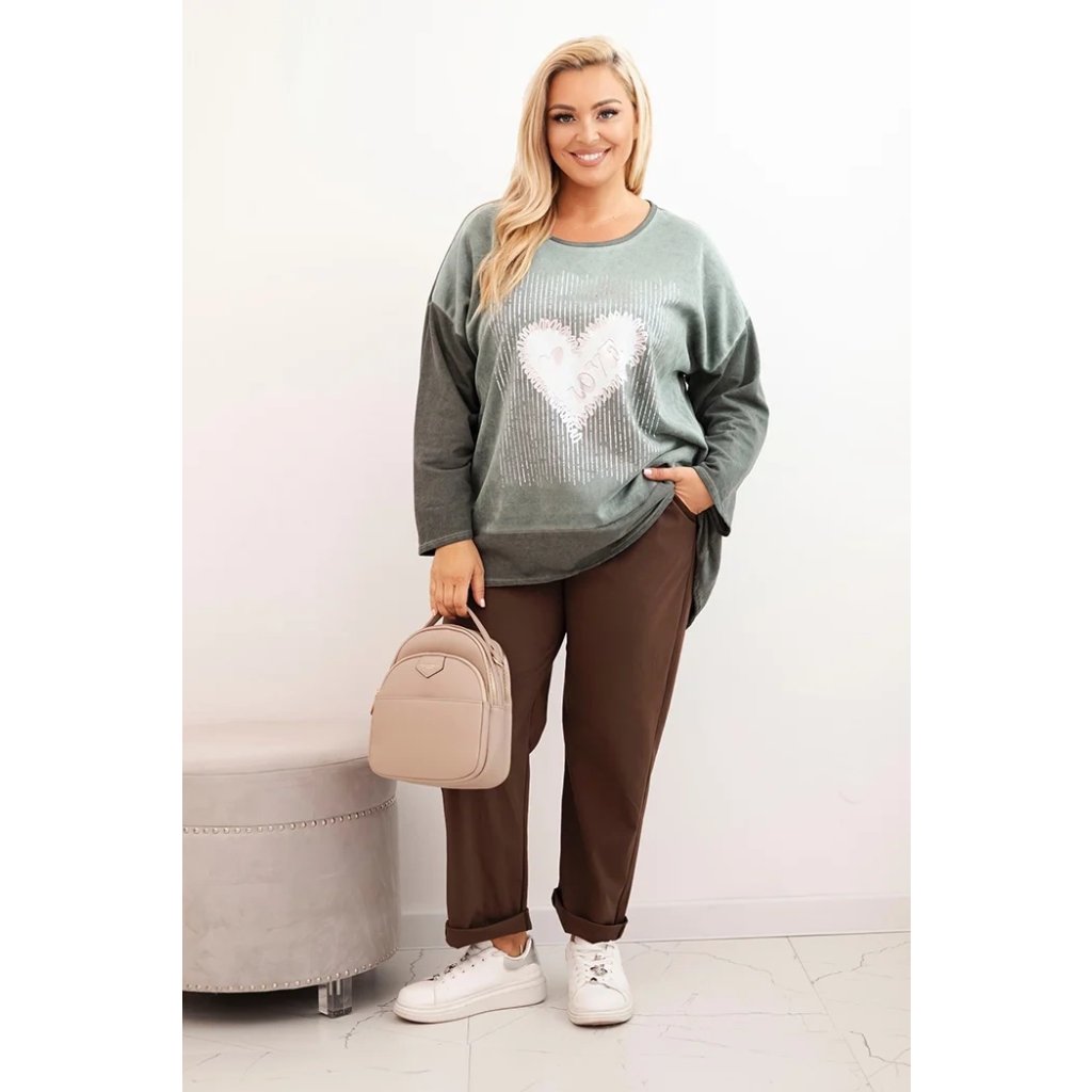 Dámská mikina ve velikosti plus size je skvělou nabídkou pro ženy, které si cení pohodlí a módního vzhledu každý den. Model je vyroben z měkké, vysoce kvalitní bavlny s přídavkem elastanu, díky čemuž je mikina elastická, příjemná na kůži a velmi pohodlná na nošení.