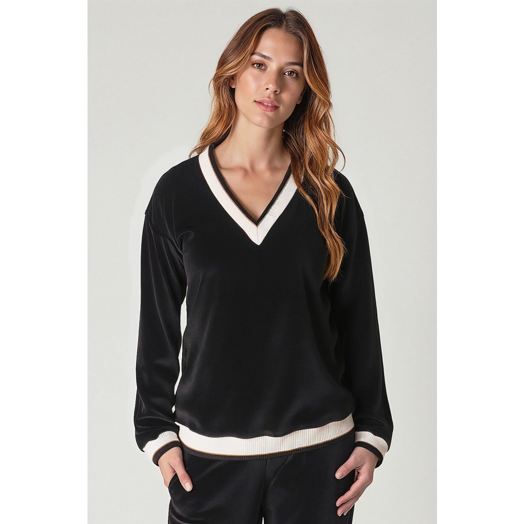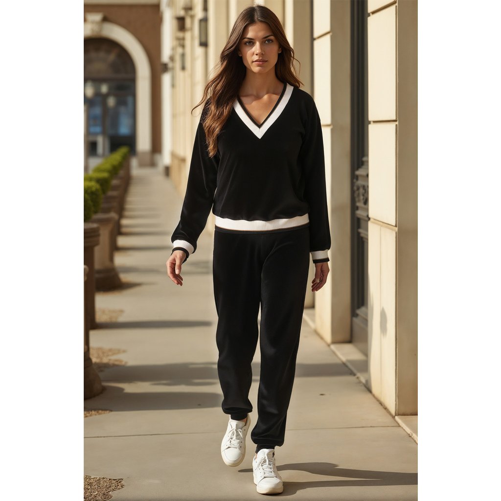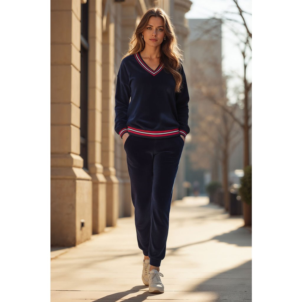 Stylová dámská mikina. - pohodlný střih - Výstřih do V - Dlouhý rukáv - výstřih, rukávy a spodní část mikiny jsou zakončeny lemem - mikina je vyrobena z měkkého, sametového materiálu - vysoká kvalita - ke kompletu doporučujeme kalhoty 9101 Složení: 80% bavlna, 20% polyester.