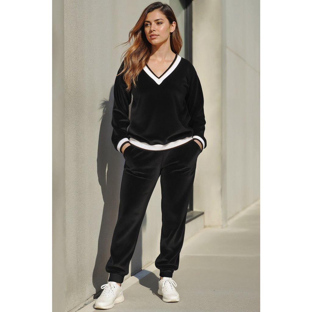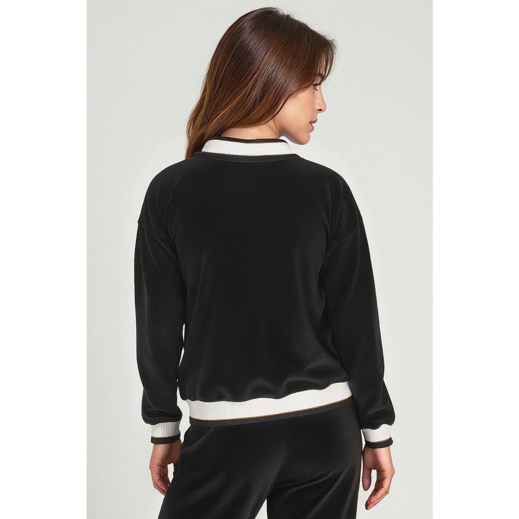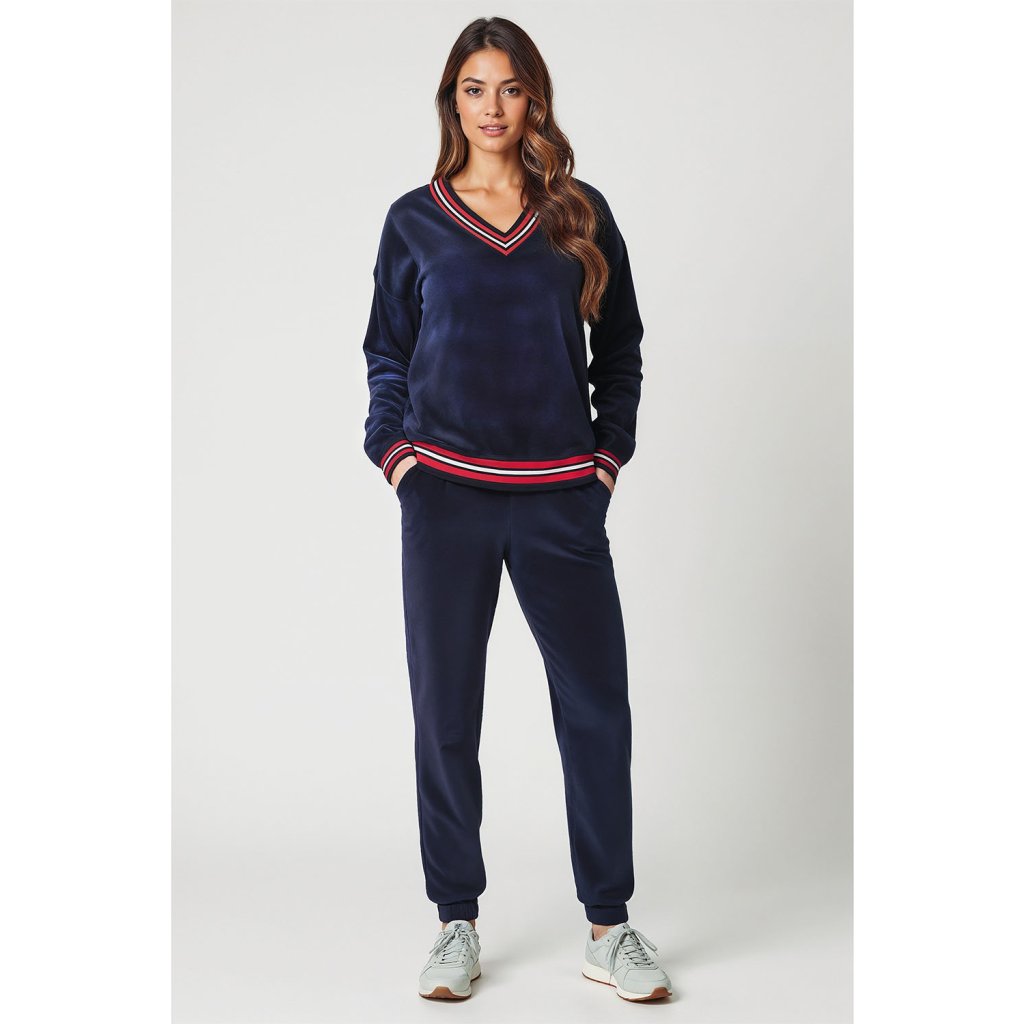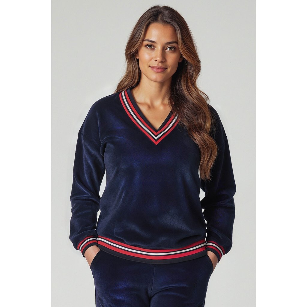Stylová dámská mikina. - pohodlný střih - Výstřih do V - Dlouhý rukáv - výstřih, rukávy a spodní část mikiny jsou zakončeny lemem - mikina je vyrobena z měkkého, sametového materiálu - vysoká kvalita - ke kompletu doporučujeme kalhoty 9101 Složení: 80% bavlna, 20% polyester.