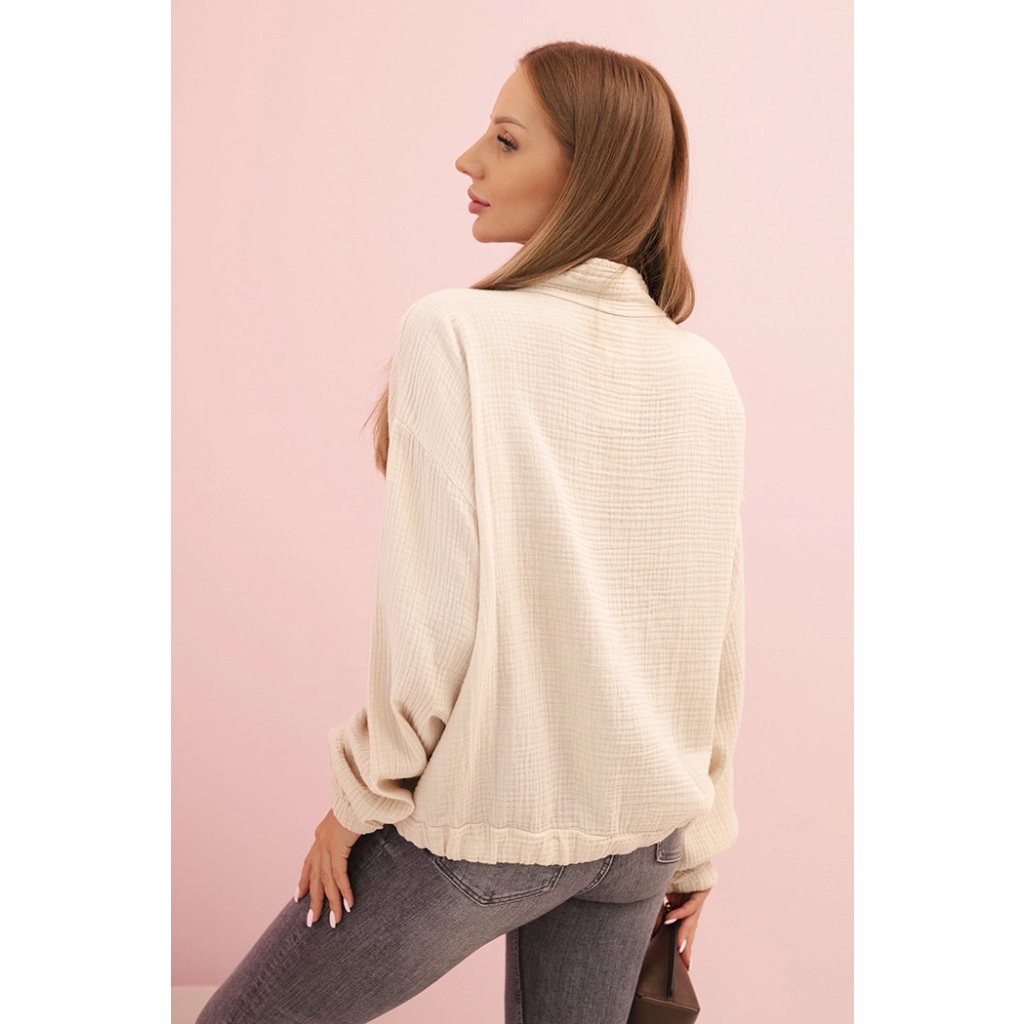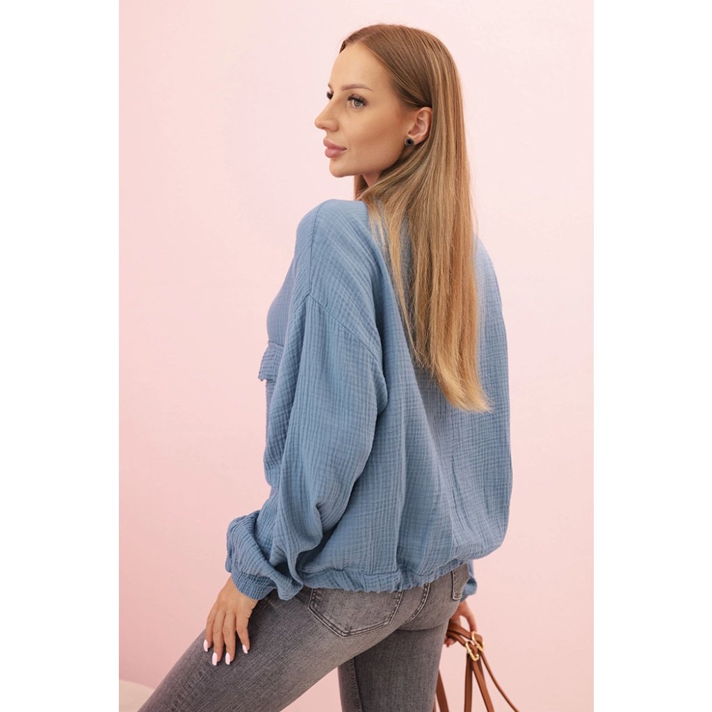 Lehká, prodyšná a nesmírně pohodlná dámská mušelínová blůza vyrobená ze 100% vysoce kvalitní bavlny. Ideální na teplejší dny, skvěle se hodí do každodenních a casualových stylizací. Jemná textura mušelínu jí dodává subtilní, přirozený vzhled a zajišťuje příjemné nošení i po celý den.