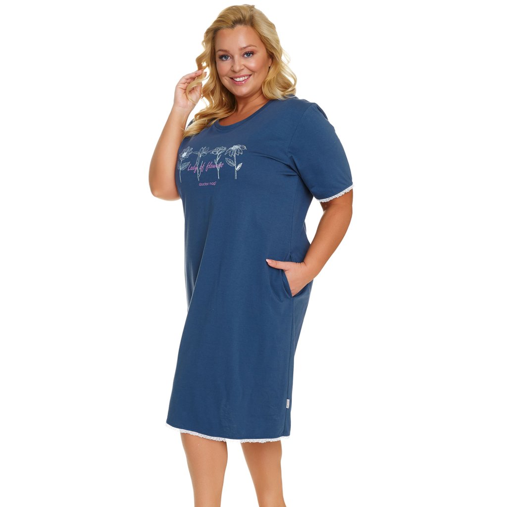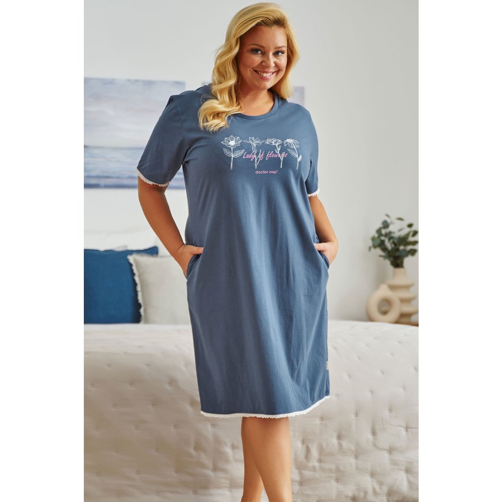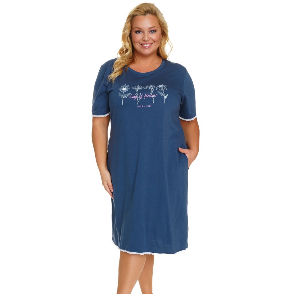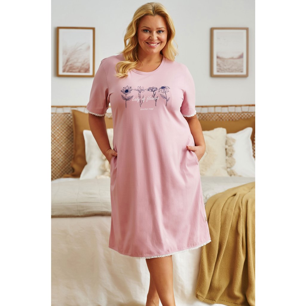 Noční košilka Doctor Nap. Model TB.5366. Vyrobeno ze 100% bavlny. S kapsami. Délka rukávu: krátká. Délka: midi. Určeno pro ženy. Výstřih: kulatý.Doplňkové parametry