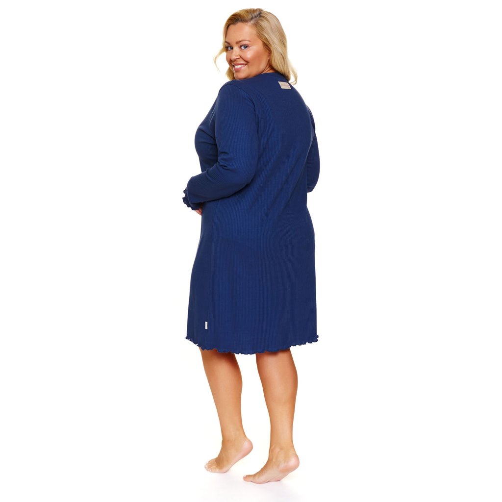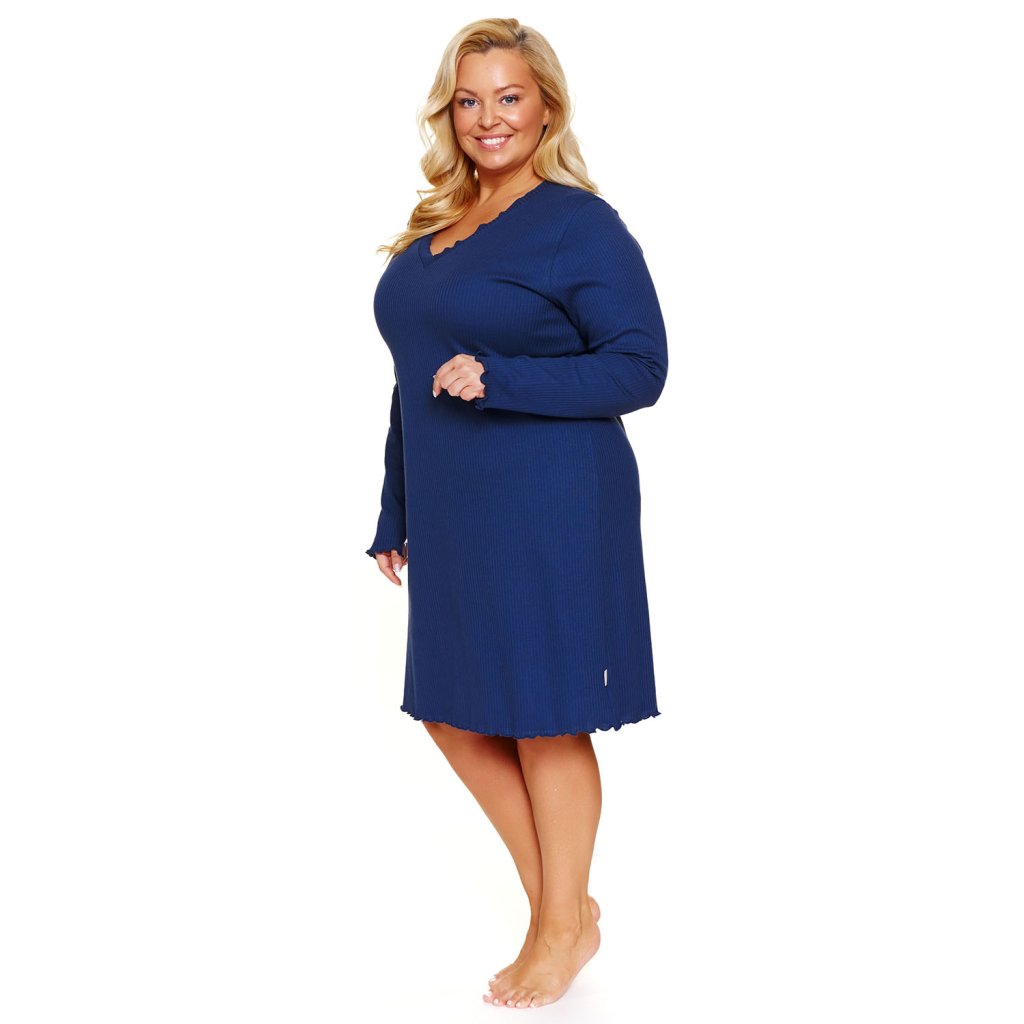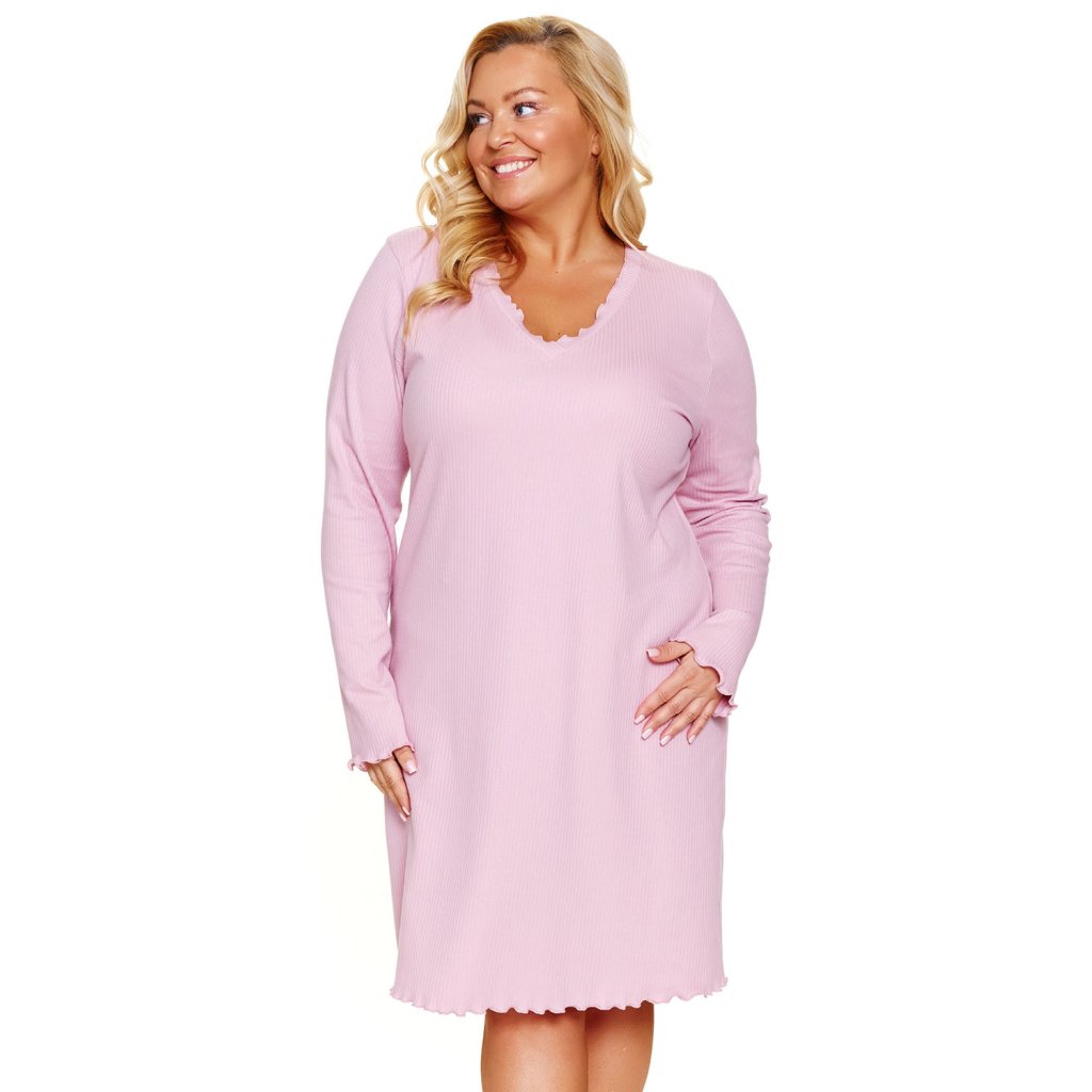 Doctor Nap 7325 – Dámská noční košilka.Noční košilka Doctor Nap 7325 je ideální pro ty, kteří oceňují jednoduchý střih a funkční detaily. Výstřih do V opticky prodlužuje krk a zvýrazňuje klíční kost, takže zůstává pohodlná pro každodenní nošení. Hladký povrch a viditelná žebrovaná textura dodávají košili jemnou strukturu. Volný střih je navržen pro naprosté pohodlí během spánku i doma. Materiál je prodyšný a poskytuje pohodlí po celou noc bez zbytečných ozdob. Absence dalších zapínání usnadňuje oblékání a zvyšuje pohodlí. Rovný lem podporuje přirozený střih. Noční košilka se dobře hodí samostatně nebo s vaším oblíbeným županem. Je to všestranný kousek vašeho domácího šatníku, který kombinuje pohodlí s estetickým, minimalistickým vzhledem.