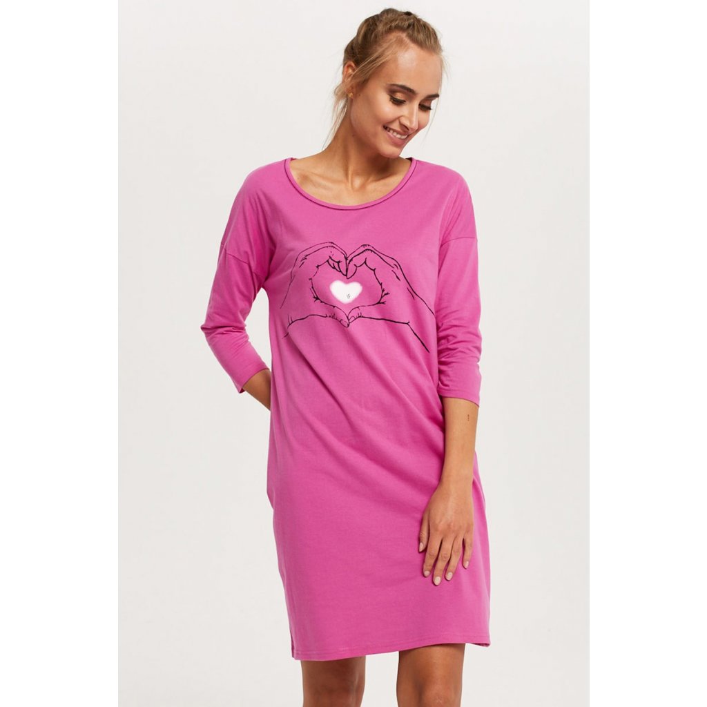 Dámská košile Galia s volným střihem je pro dámy zajímavou nabídkou. Klasický střih pyžama bude slušet každé postavě. Díky tomu, že linka není vybavená, bude používání velmi příjemné a pohodlné. Košile byla navržena s důrazem na každý detail a dokonalé zpracování. Dodává se ve dvou barevných provedeních: amarantové a tmavě modré. Na obou je vyobrazeno srdce držené v rukou, rovněž uspořádané do tvaru srdce. Dalším ozdobným prvkem je kontrastní lem kolem kulatého výstřihu. Použitý materiál je 100% bavlna. Dodává se ve velikostech S až XXL. Vlastnosti: - originální vzor - dvě barevné varianty: amarantová a tmavě modrá - výstřih s kontrastním lemem - volný, pohodlný střih - dlouhé rukávy - pyžamo střižené a ušité v Polsku Složení: 100% bavlnaDoplňkové parametry