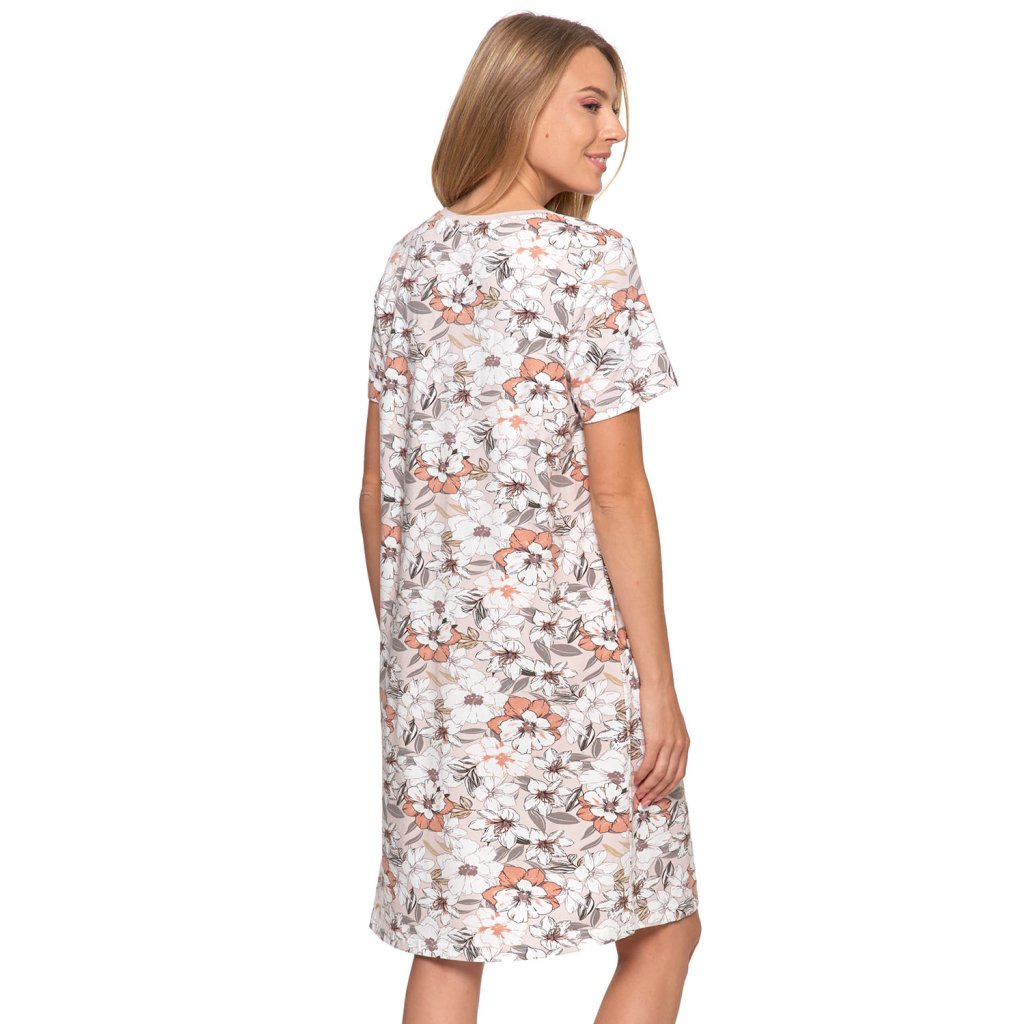 Noční košilka Moraj. Model PDK3100-020. Vyrobeno z 95% bavlny, 5% elastanu. Délka rukávu: krátký. Dámský produkt. Výstřih: kulatý. Délka: krátká.Doplňkové parametry
