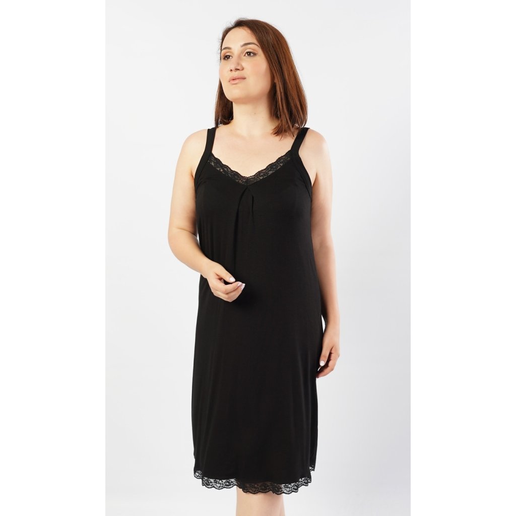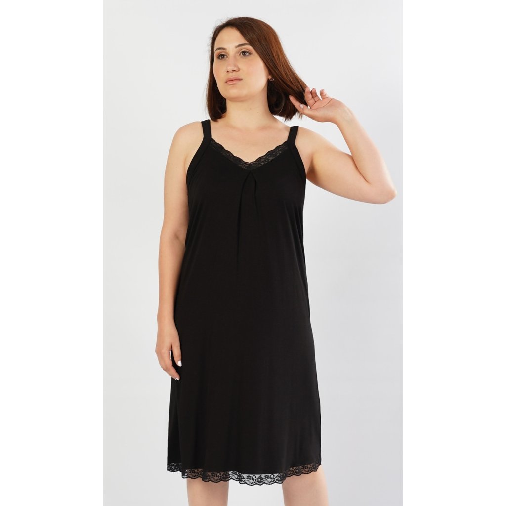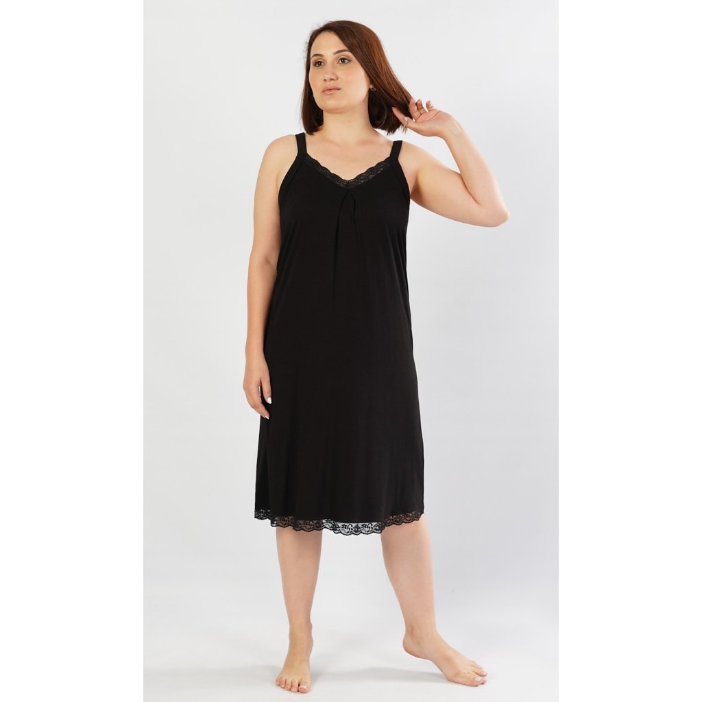 Dámská bavlněná noční košile na ramínka Andrea. Dámská noční košile na širší ramínka je elegantní a zároveň pohodlná. Lemování výstřihu a spodní lem jsou ozdobeny krajkou. Košilka má příjemnou délku ke kolenům. Použitý bavlněný materiál je příjemný a poddajný na dotek.