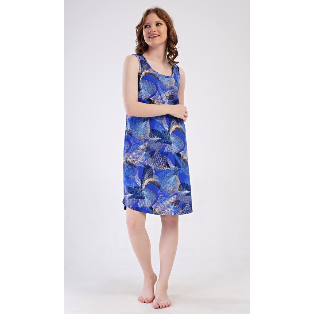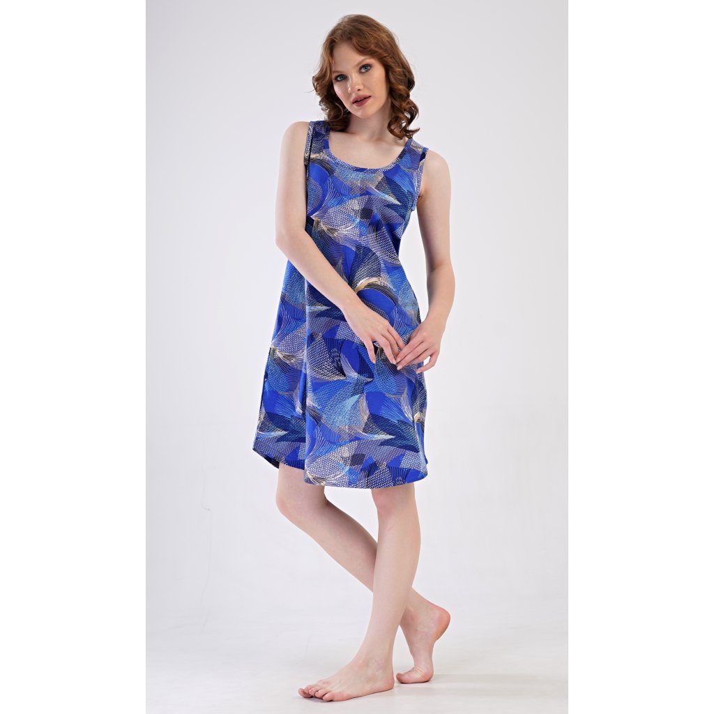 Dámská bavlněná noční košile na ramínka Eliza. Noční košile se širšími ramínky a kulatým výstřihem je potištěna geometrickými vzory. Použitý materiál s obsahem bavlny 100% je příjemný a poddajný na dotek. Košile je vhodná i na denní nošení, obvzlášť v horkých letních dnech.
