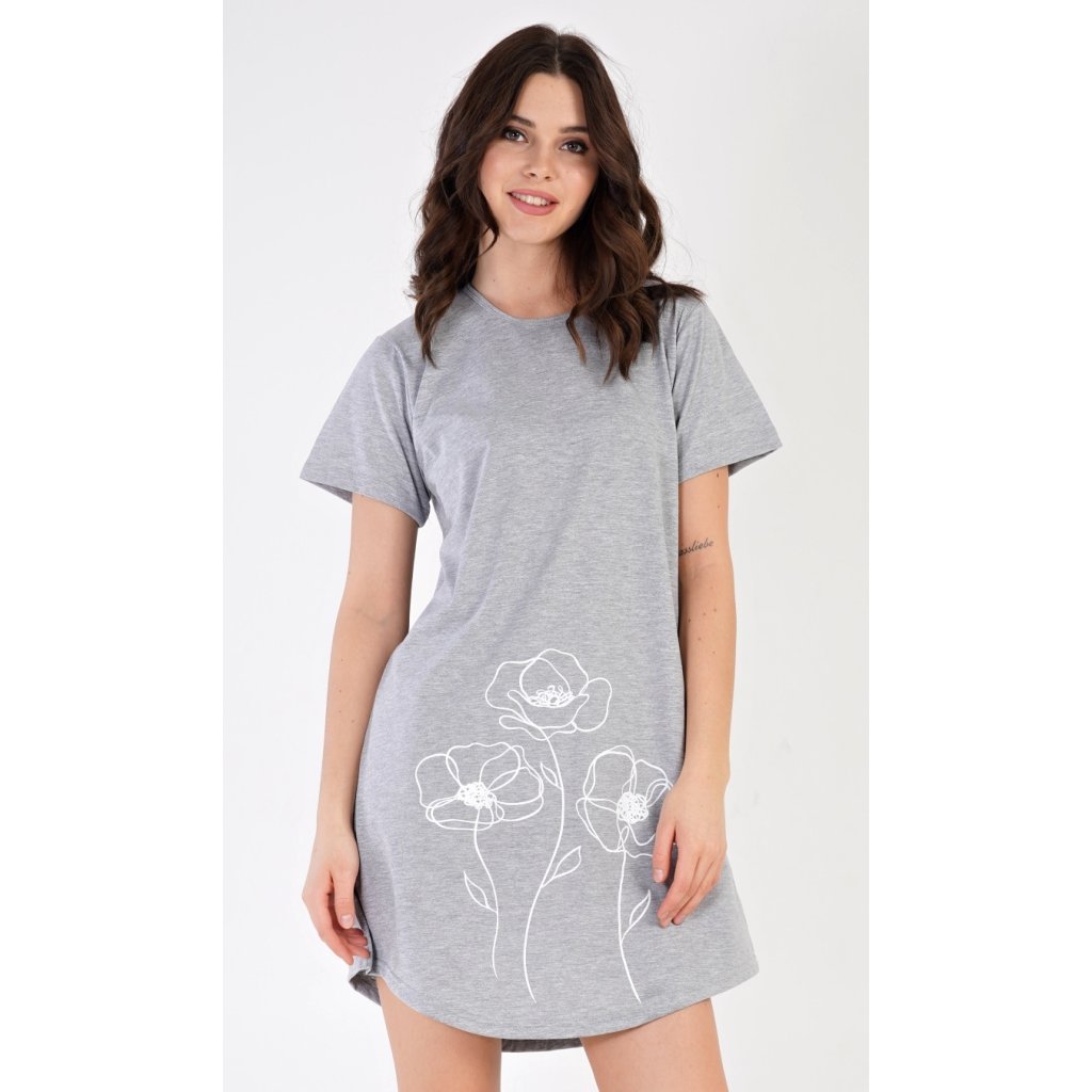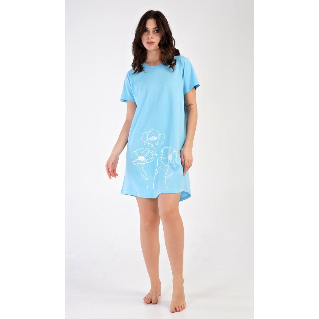 Dámská bavlněná noční košile s krátkým rukávem. Použitý bavlněný materiál je příjemný a poddajný na dotek.