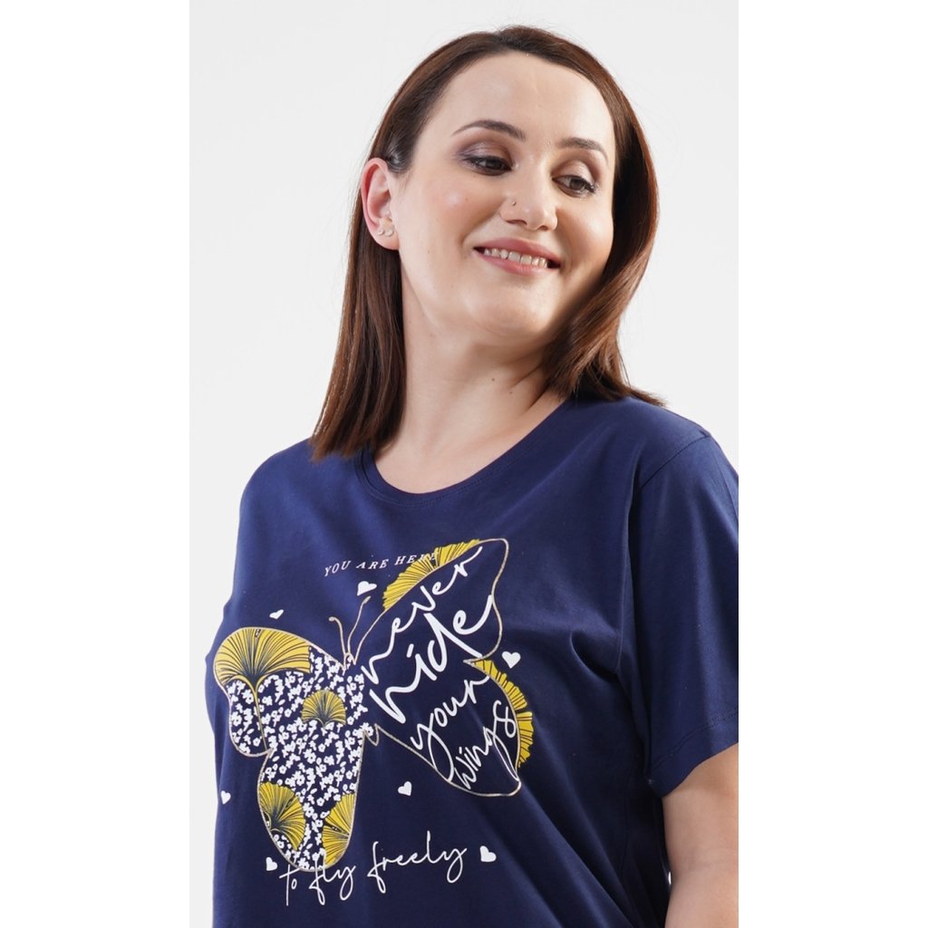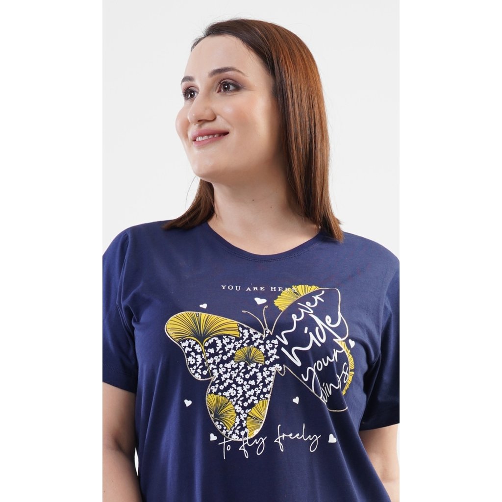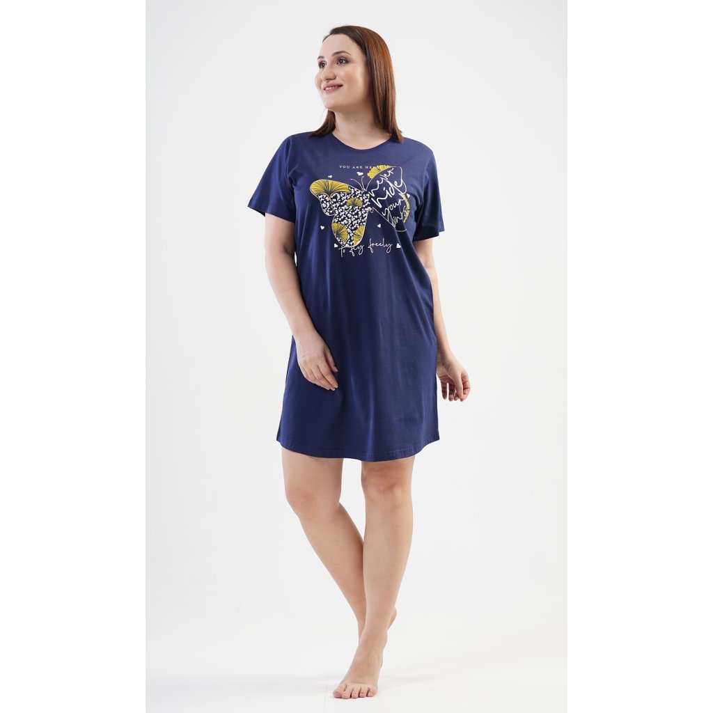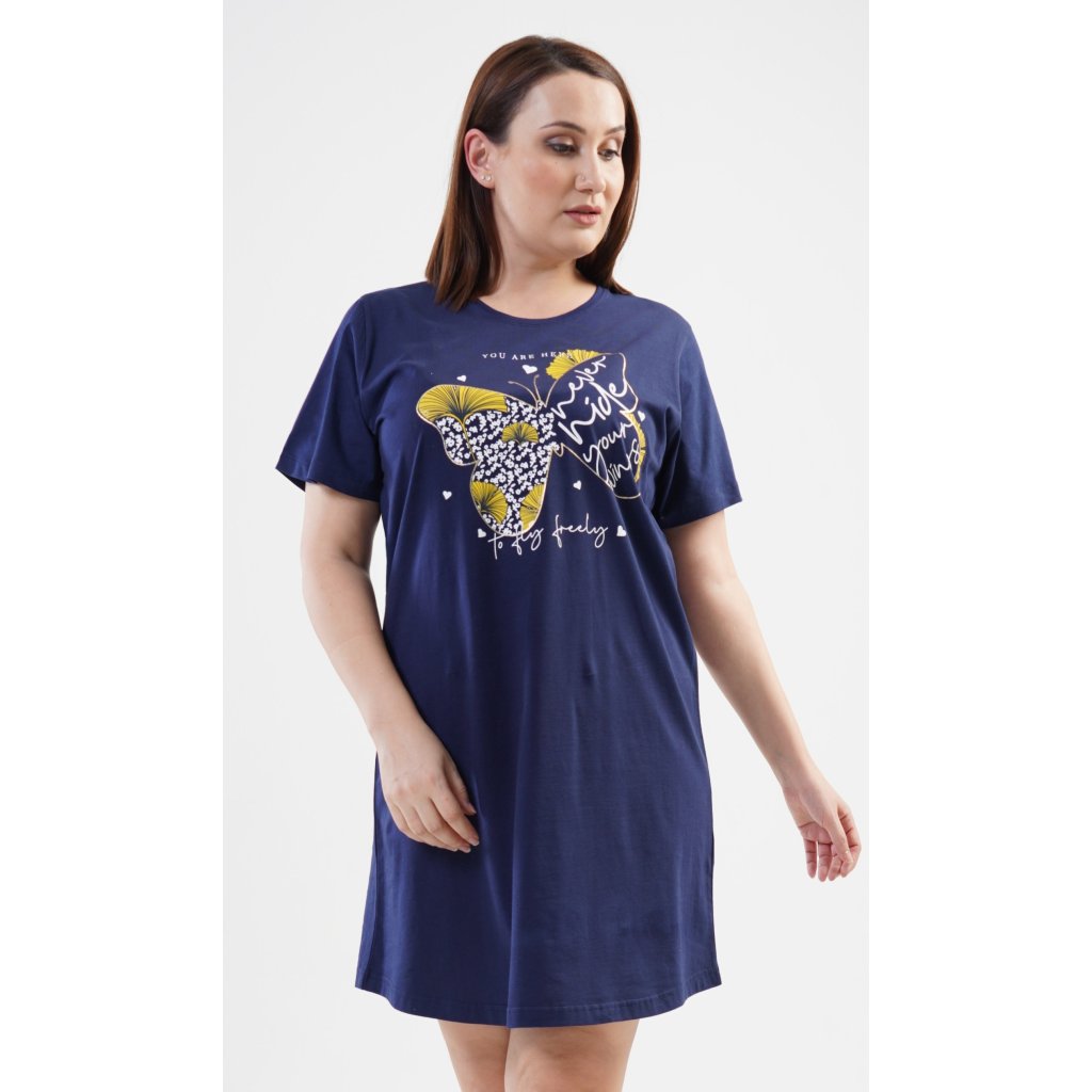 Dámská bavlněná noční košile s krátkým rukávem Melanie. Noční košile má na hrudi velikého motýla, který je částečně tvořen nápisem 'Never hide your Wings'. Použitý bavlněný materiál je příjemný a poddajný na dotek.