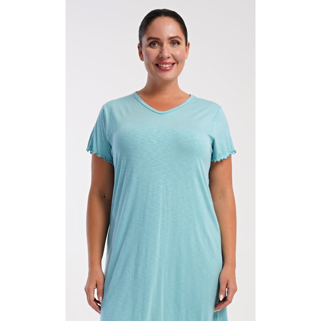 Dámská bavlněná noční košile s krátkým rukávem Sabrina. Košile má příjemnou délkou nad kolena a výstřih do V, je ozdobena žlábkováním na rukávech a spodním lemu. Použitý materiál s podílem bavlny 95% je příjemný a poddajný na dotek.