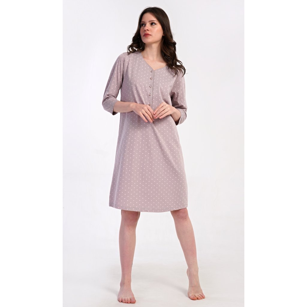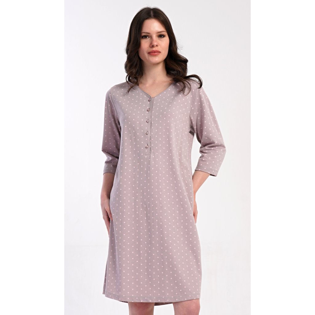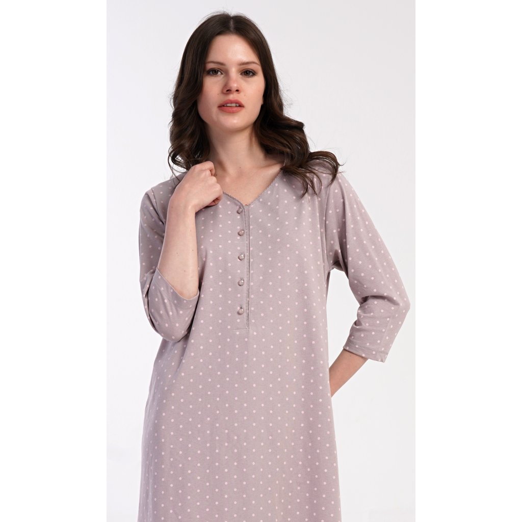 Dámská bavlněná noční košile s tříčtvrtečním rukávem Adélka. Noční košile se zapínáním na knoflíky a příjemnou délkou nad kolena je ozdobena drobnými puntíky. Použitý materiál s obsahem bavlny 100% je příjemný a poddajný na dotek.