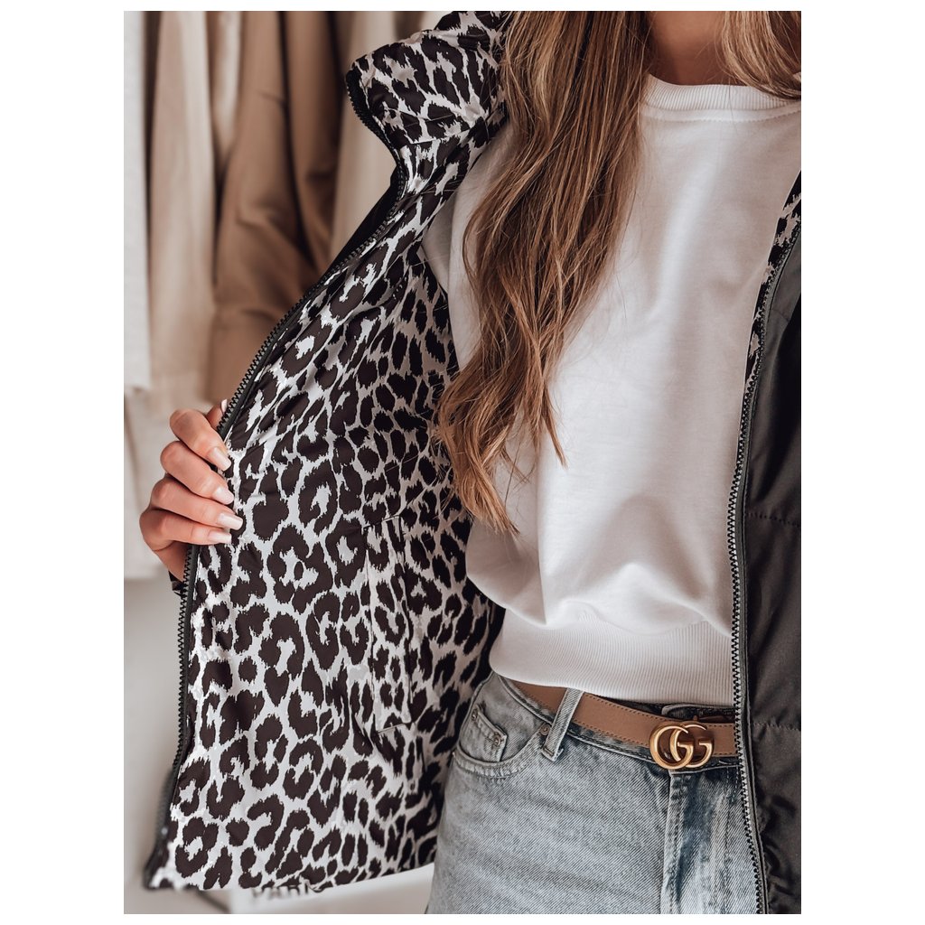Tato oboustranná přechodná bunda je perfektním řešením pro milovnice všestranných stylů. Jedna strana je hladká, druhá s výrazným zvířecím potiskem, který poskytuje všestrannost. Má kapsy na zip, pevnou kapuci a lehké polstrování. Ideální pro jarní dny, kdy je styl a pohodlí klíčové.