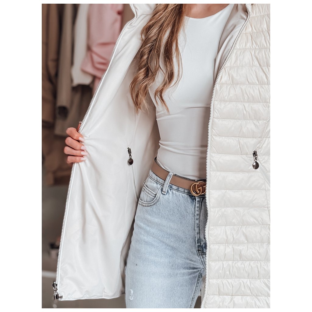 Lehká přechodná bunda, která kombinuje styl a šarm. Oboustranný design umožňuje rychlé přizpůsobení různým outfitům. Vybavena odnímatelnou kapucí, kapsami na zip a robustním zipem. Prošívaná struktura jí dodává moderní nádech a ergonomický střih lichotí postavě. Ideální pro každodenní nošení v proměnlivých podmínkách.