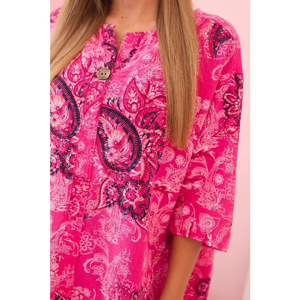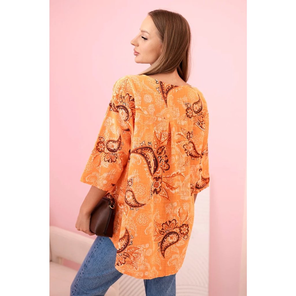 Lehká a vzdušná dámská oversize halenka vyrobená ze 100% přírodní bavlny je skvělou volbou na každodenní nošení, zejména v teplejších dnech. Volný, pohodlný střih zajišťuje komfort a svobodu pohybu, a výrazný paisley vzor jí dodává charakter a módní vzhled. Blůzka nemá límeček, což jí dodává více casualový a univerzální styl – skvěle se hodí jak do práce, tak na procházku či setkání s přáteli. Ohnutelné rukávy se zapínáním na knoflík jsou praktickým detailem, který přidává funkčnost. Italská výroba zaručuje vysokou kvalitu zpracování.