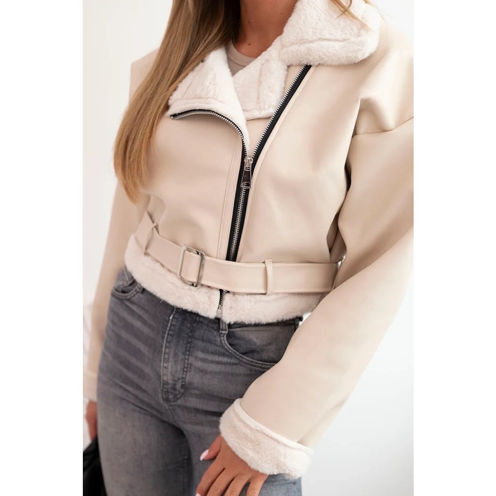 Stylová dámská bunda v pilotním stylu je kombinací moderního vzhledu a pohodlí na chladné dny. Vyrobena z hladkého materiálu s matným povrchem a podšitá měkkou kožešinou, poskytuje teplo a výjimečný komfort nošení. Široký límec s kožešinovým lemem, manžety s ohrnutím a nastavitelný pásek na spodní části podtrhují módní, městský charakter modelu.