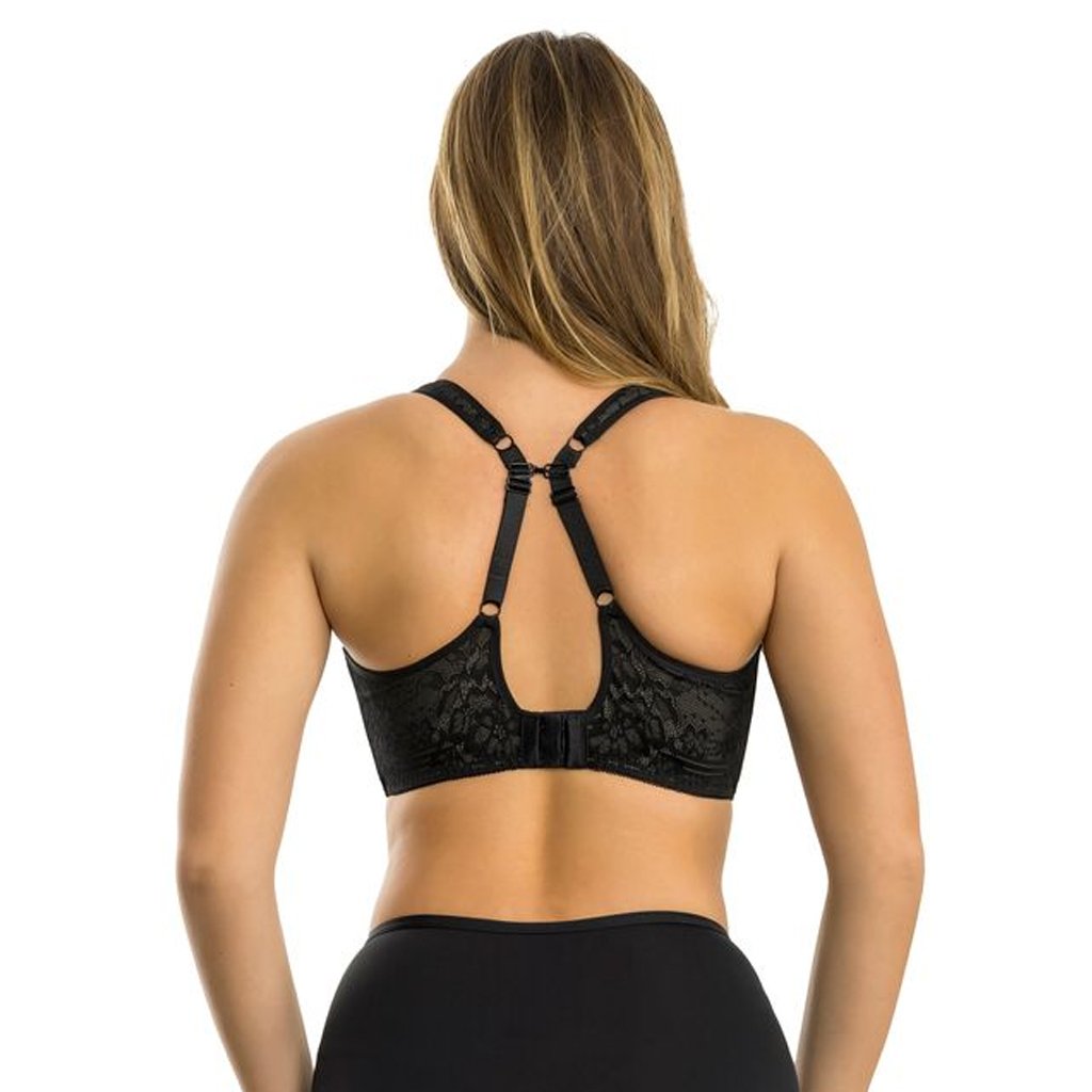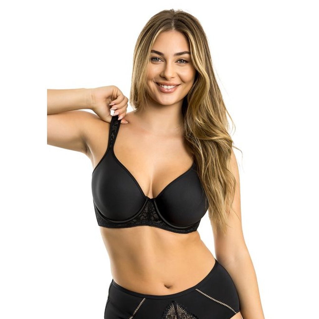 Spacer podprsenka Parfait v elegantní černé barvě nabízí jedinečnou kombinaci lehkosti, vzdušnosti a podpory. Košíčky z moderní spacer pěny jsou mimořádně prodyšné, rychleschnoucí a zároveň si zachovávají pevný tvar, takže poskytují pohodlí po celý den bez kompromisů. Kostice formují přirozeně kulatý dekolt, zatímco jemná krajka na bocích a zádech dodává luxusní vzhled. Široká ramínka s možností sepnutí na zádech do tvaru písmene T zajišťují, že podprsenka skvěle sedí a neklouže. Elegantní černé provedení je univerzální a hodí se jak pro každodenní nošení, tak pro speciální příležitosti.