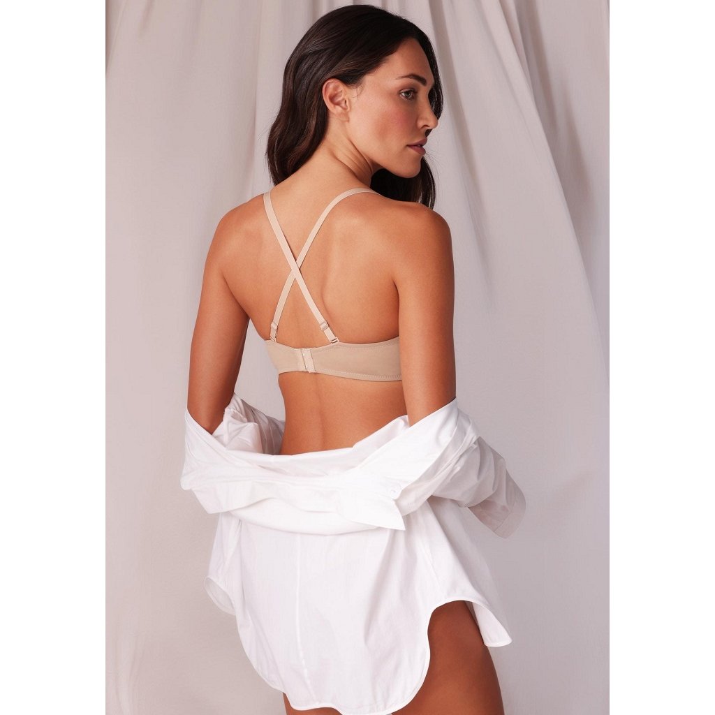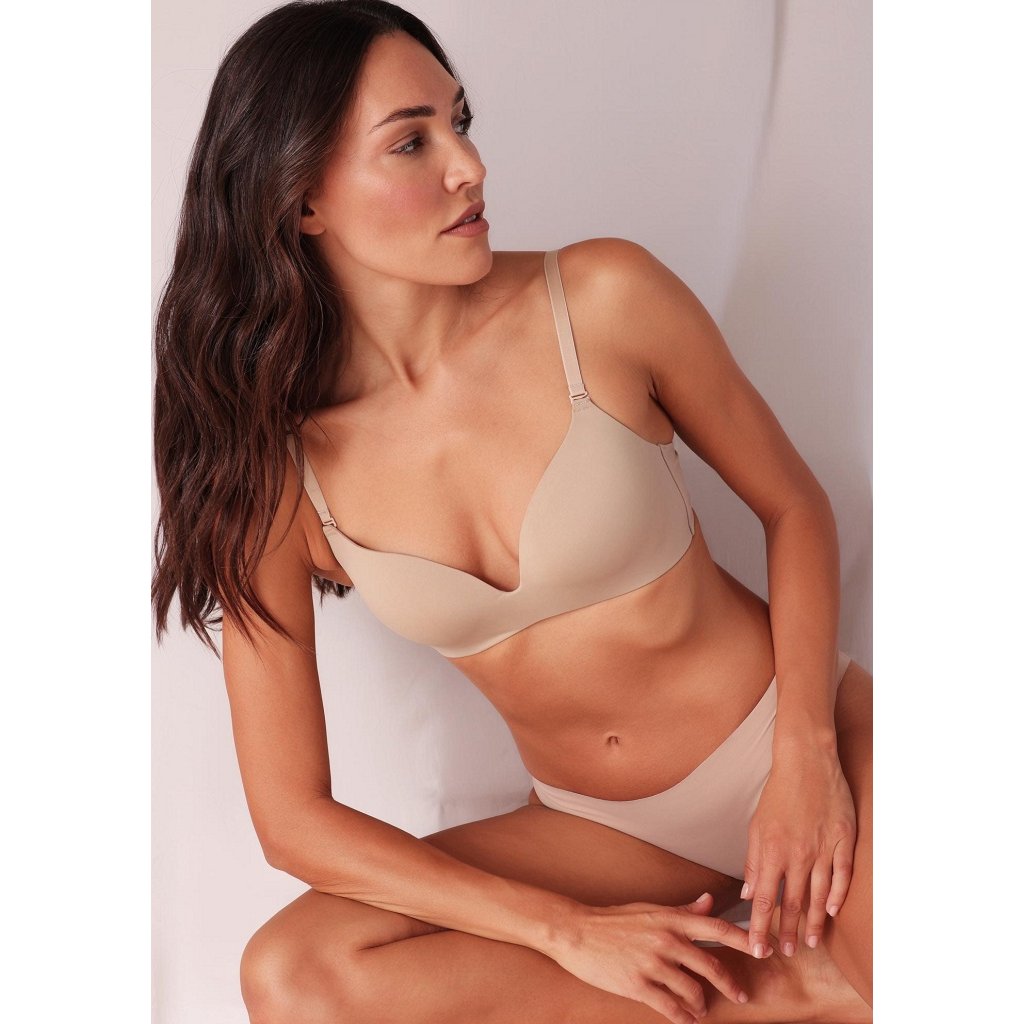 Dámská podprsenka italské značky Cotonella. Tento nový model podprsenky je bez kostic, navržený pro maximální pohodlí a diskrétnost pod oblečení. Podprsenka má měkké vycpávky pro přirozený tvar a vysokou podporu poprsí. Spodní část podprsenky tvoří plochý lem bez elastických švů, což zajišťuje neviditelnost pod oblečením. Podprsenka má na bocích všité boční kostice, proti krčení obvodové části. Ramínka jsou délkově nastavitelná a odnímatelná, tím umožňuje různé styly nošení (klasické, křížené nebo bez ramínek). Zapínání podprsenky má dva háčky a tři pozice. Materiál je certifikován podle STANDARD 100 by OEKO-TEX, což znamená, že neobsahuje škodlivé látky.