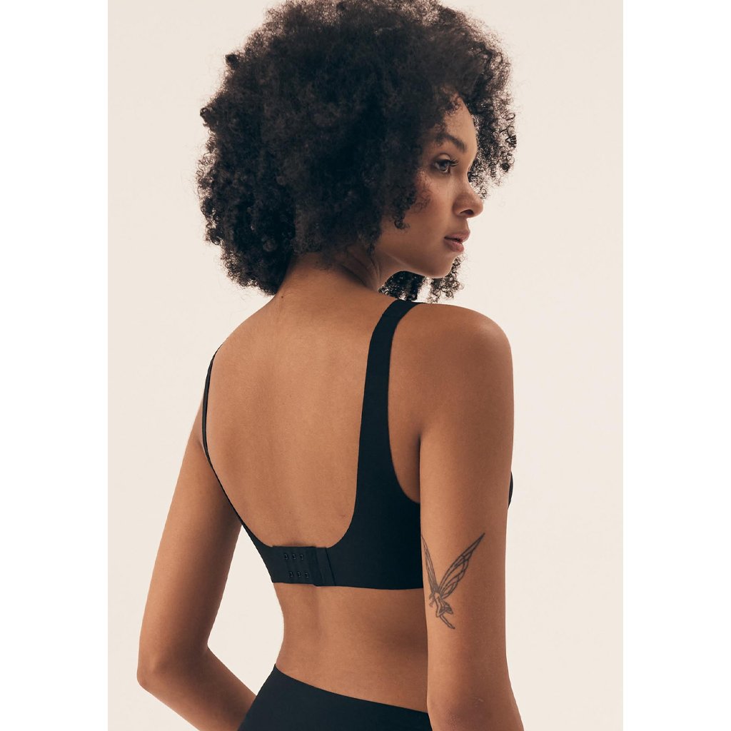 Černá podprsenka Henderson kombinuje pohodlí a praktický design. Tento model je bez kostic a má vyjímatelné vycpávky, které se dají snadno přizpůsobit. Zapínání na zádech je na tři háčky a tři pozice, což zajišťuje perfektní přizpůsobení vaší postavě. Měkký, elastický materiál se krásně přizpůsobí a nabízí komfort po celý den. Skvělá volba pro každodenní nošení!