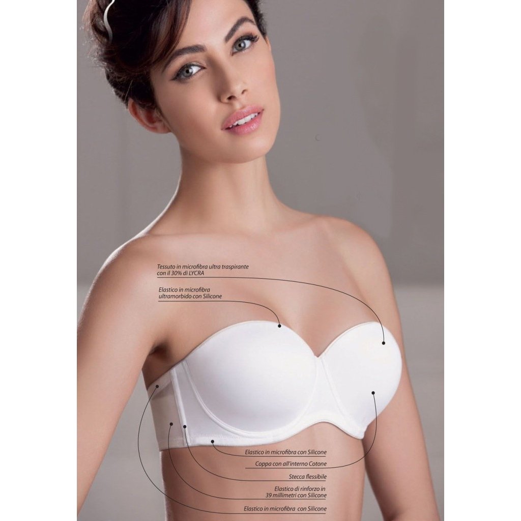 Dámská, mírně vyztužená korzetová podprsenka od značky Leilieve. Podprsenka je po celém vnitřním obvodě opatřená dvěma řadami silikonových pásků, které zabezpečují držení korzetové podprsenky i bez ramínek. Podprsenka má vyšší střed pro lepší držení poprsí. Součástí balení jsou látková i silikonová ramínka.