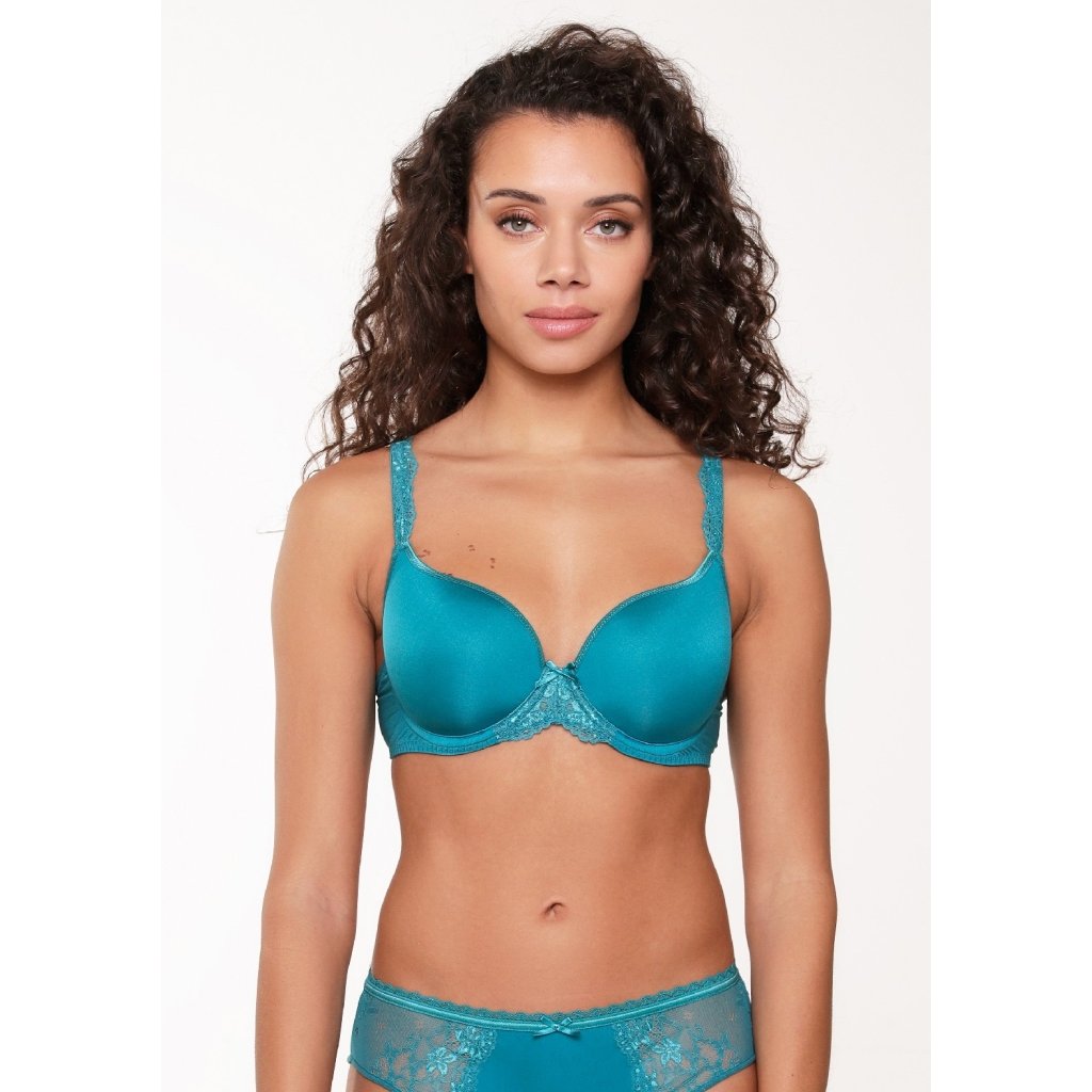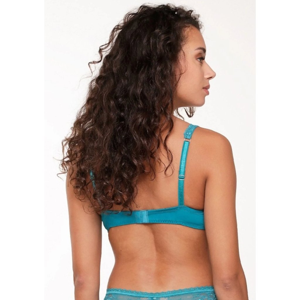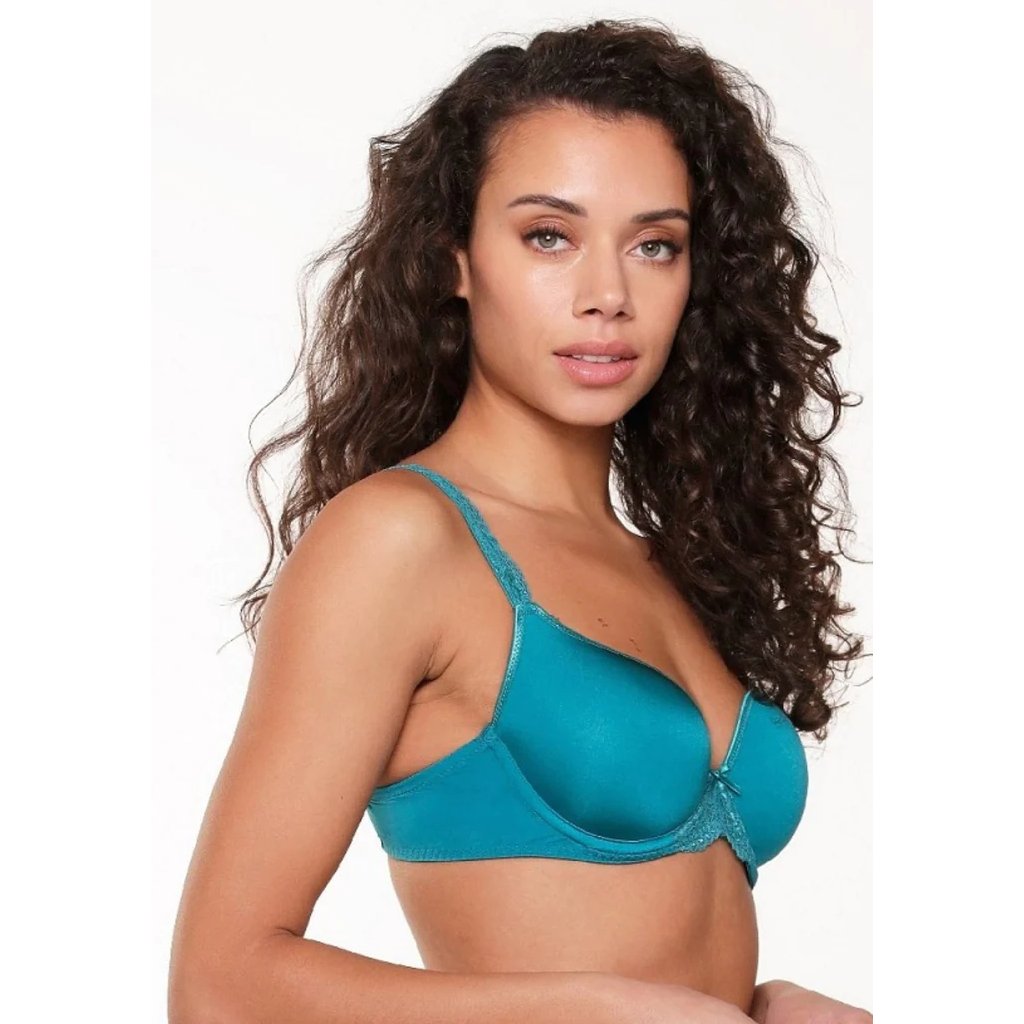 Dámská podprsenka od značky LingaDore. Podprsenka je pošitá hladkou látkou a košíčky podprsenky mají jemnou výztuž. Ve středu dekoltu je aplikována jemná krajka v kombinaci se saténovou mašličkou. Ramínka podprsenky jsou zdobena krajkou. Nastavitelná ramínka jsou neodepínatelná. Zapínání podprsenky je na dva háčky na tři pozice.