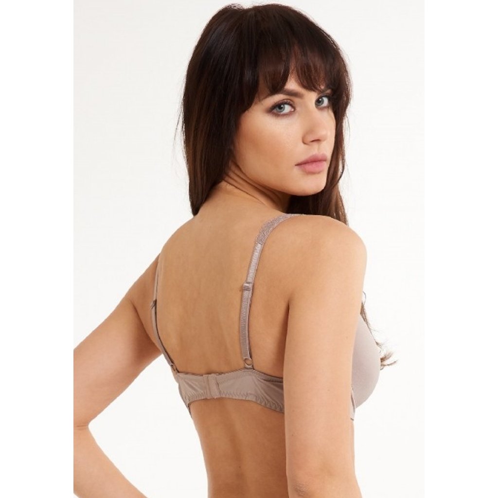 Dámská hladká podprsenka značky LingaDore. Podprsenka má hladké košičky. Košíčky podprsenky mají jemnou výztuž. Ve středu dekoltu je aplikována jemná krajka v kombinaci se saténovou mašličkou. Ramínka podprsenky jsou zdobena krajkou. Obvod podprsenky je hladký. Nastavitelná ramínka jsou neodepínatelná. Zapínání podprsenky je na dva háčky na tři pozice.