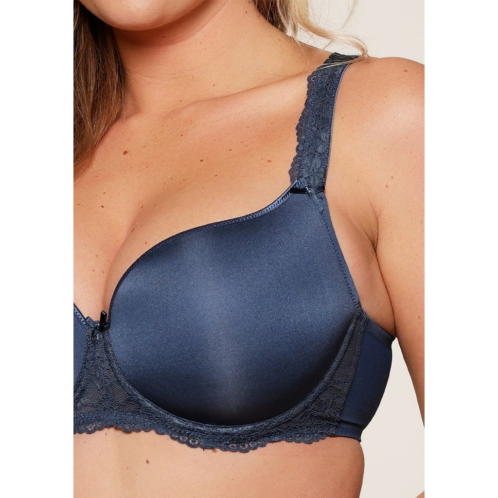 Elegantní podprsenka LingaDore v tmavě modrém odstínu nabízí perfektní kombinaci podpory a pohodlí. Hladké vyztužené košíčky s kosticí vytvářejí přirozeně zaoblený dekolt a poskytují pevnou oporu i při celodenním nošení. Decentní krajkový lem pod prsy dodává modelu ženský a sofistikovaný vzhled. Podprsenka má zapínání na tři háčky se čtyřmi pozicemi a délkově nastavitelná ramínka pro maximální komfort. Skvěle ladí s kalhotkami ze stejné kolekce.