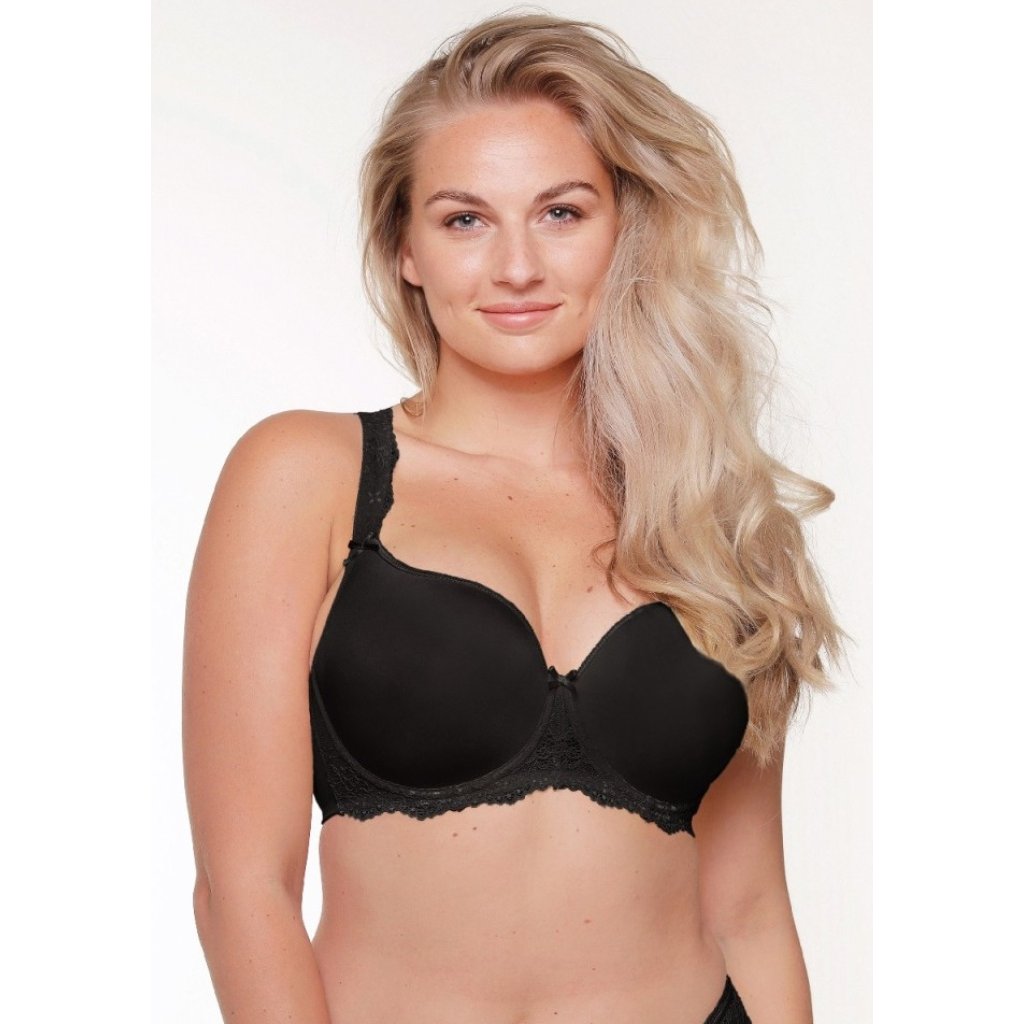 Dámská hladká podprsenka značky LingaDore v elegantní černé barvě. Velikostní rozšíření oblíbené podprsenky 1400-1 pro objemnější poprsí. Podprsenka má hladké košičky. Košíčky podprsenky mají jemnou výztuž. Ve středu dekoltu je aplikována jemná krajka v kombinaci se saténovou mašličkou. Ramínka podprsenky jsou zdobena krajkou. Obvod podprsenky je hladký. Nastavitelná ramínka jsou neodepínatelná. Zapínání podprsenky je na dva háčky na tři pozice.