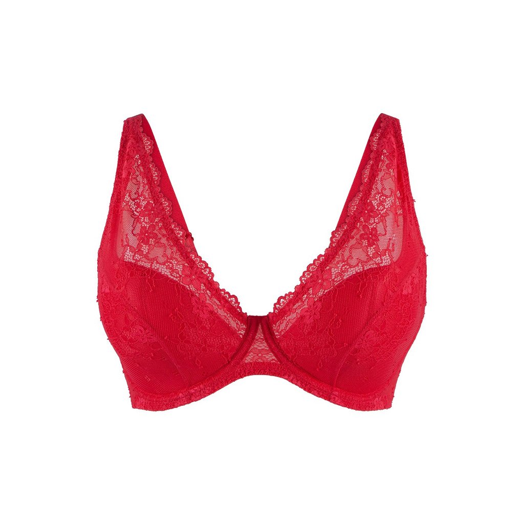 Elegantní červená podprsenka s jemnou krajkou, která zaujme svým svůdným vzhledem i pohodlným střihem. Košíčky jsou mírně vyztužené a doplněné o kostice, které zajistí dokonalou oporu a krásně vytvarovaný dekolt. Ramínka jsou délkově nastavitelná a zapínání je řešeno na tři háčky se čtyřmi pozicemi, takže si podprsenku snadno přizpůsobíte přesně své postavě. Skvělá volba pro každodenní nošení i speciální příležitosti.
