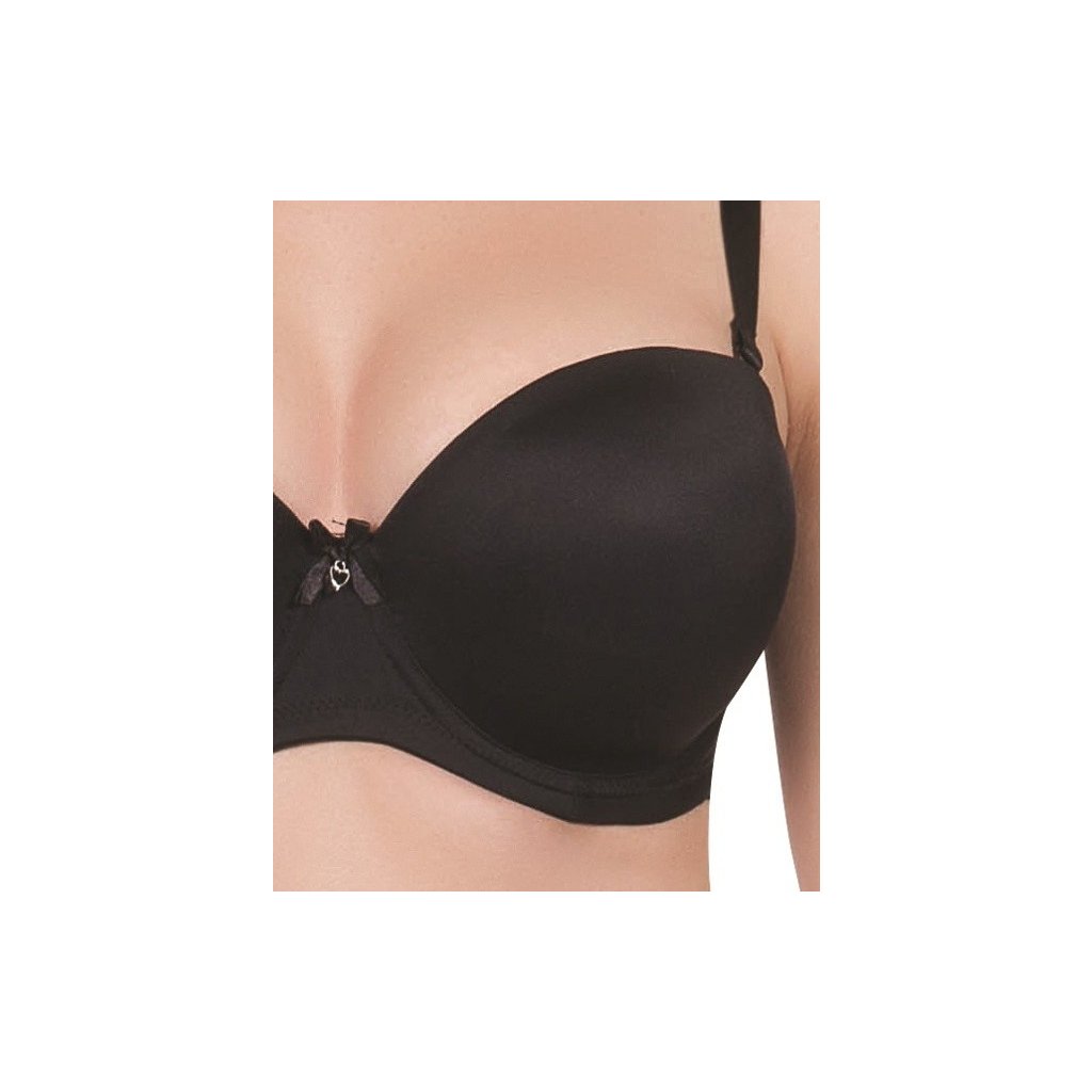 Mírně vyztužená podprsenka s odepínacími ramínky (průhledná ramínka jsou součástí balení) od značky Parfait. Zcela hladký model perfektně sedí, střih je vhodný zejména pro plnější poprsí. Podprsenka je určena pod přiléhavé oděvy, do výstřihů atp. Přestože střed není hodně vysoký dobře drží i větší prsa, dělá pěkný kulatý dekolt. Tento typ podprsenky prsa dává pěkně k sobě a nadzvedává je. Podprsenka je na bocích i horním okraji košíčků opatřena silikonovými pásky, které zaručí, že neklouže po těle. Ideální model pod společenské či korzetové šaty. Uprostřed košíčků je jako jediná ozdoba našitá drobná mašlička s kovovým srdíčkem.