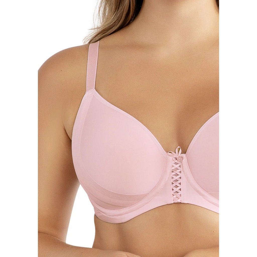Dámská podprsenka od americké značky Parfait. Podprsenka má jemně vyztužené košíčky s všitou poloviční podšívkou na podporu prsou. Vnější část košíčků zdobí jemná krajka a střed všitá šňůrka. Ramínka jsou pevně všitá, nastavitelná. Zapínání je na 2 háčky a 3 pozice.