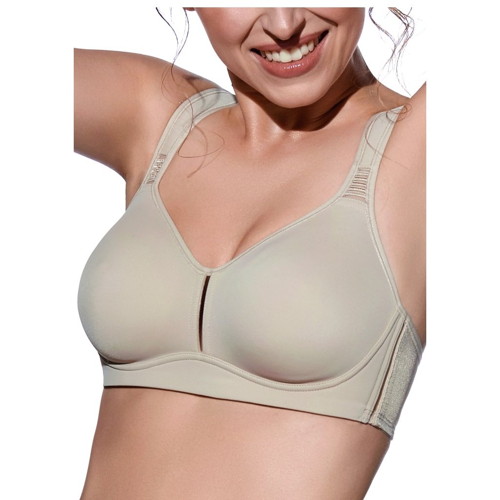 Dámská podprsenka španělské značky Selene. Podprsenka je vhodná na celodenní nošení. Hladké košíčky jsou nevyztužené a bez kostic. Podprsenka má vysoký prošívaný střed, pod prsy a v bocích je zpevněná. Obvod kolem košíčků je vypolstrovaný, podprsenka tak podrží a pozvedne i větší poprsí. Rozšířená ramínka jsou pevně všitá, délkově nastavitelná. Na ramenou jsou polstrovaná, aby se nezařezávala a netlačila. Obvod je lemován pružnou gumičkou, zapínání je v zadní části na dva háčky a čtyři pozice. Poslední obrázek je na ukázku podprsenky ze zadu v jiné barvě.