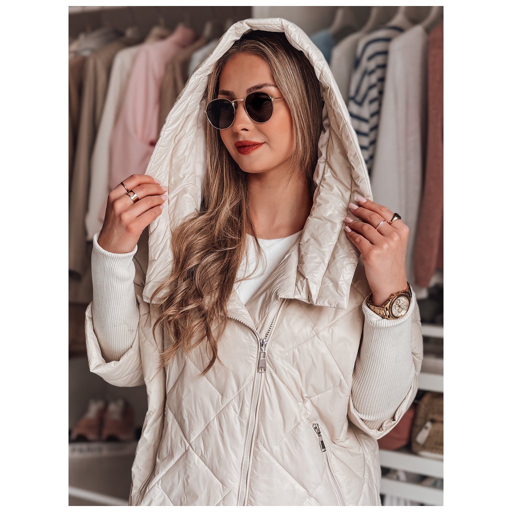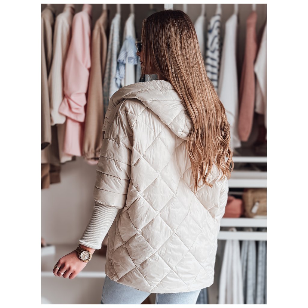 Tato nadměrná prošívaná dámská bunda kombinuje pohodlí s módním vzhledem. Zapíná se na zip, má pevnou kapuci a dvě ozdobné kapsy na zip. Žebrované manžety zajišťují pohodlí. Ideální pro přechodná období, poskytuje teplo a volnost pohybu v jakémkoli outfitu.