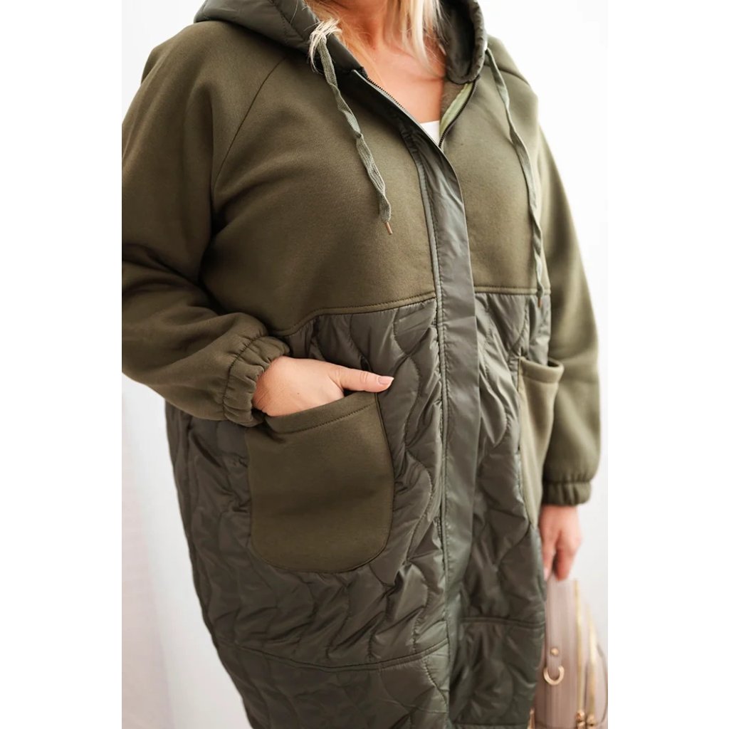 Dámská prošívaná mikina Plus Size s kapucí a velkými kapsami fango