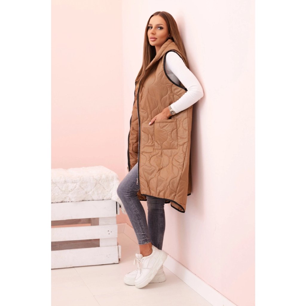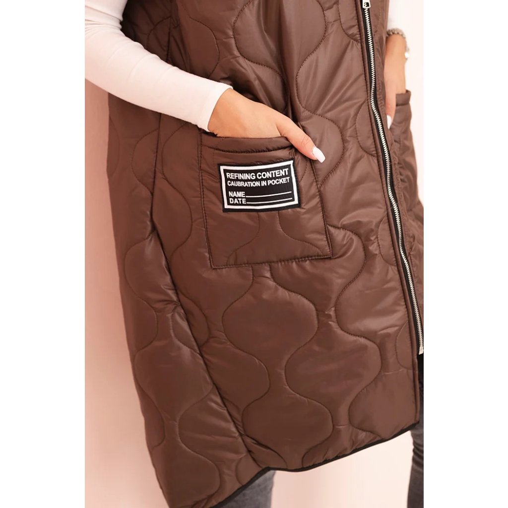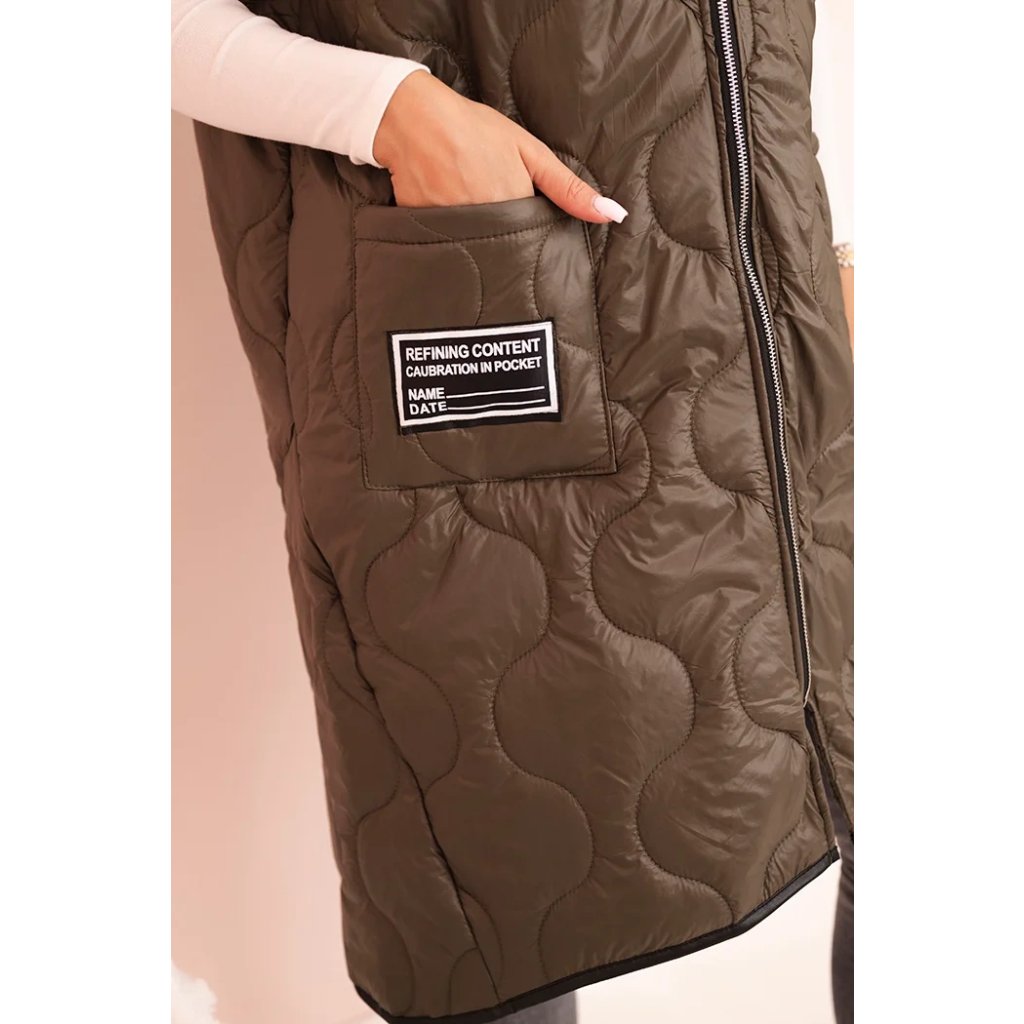 Pikovaná dámská vesta Plus Size je ideálním návrhem na chladnější dny. Díky praktické kapuci a pohodlnému zapínání na zip se hodí jak do městských stylizací, tak na procházky. Model má módní geometrický vzor prošívání, který dodává celku charakter, a délka sahající za boky skvěle modeluje siluetu. Prostorné kapsy vpředu zvyšují funkčnost a ozdobná nášivka dodává sportovní styl. Tato vesta je kombinací pohodlí a stylu – vyrobena z lehkého, ale odolného materiálu, ideální k nošení po celou přechodnou sezónu. Může být kombinována s legínami, džíny nebo sportovním šaty, čímž vytváří módní, vrstvené stylizace. Velikost je univerzální a bude vhodná pro dámy ve velikosti L, XL, XXL.