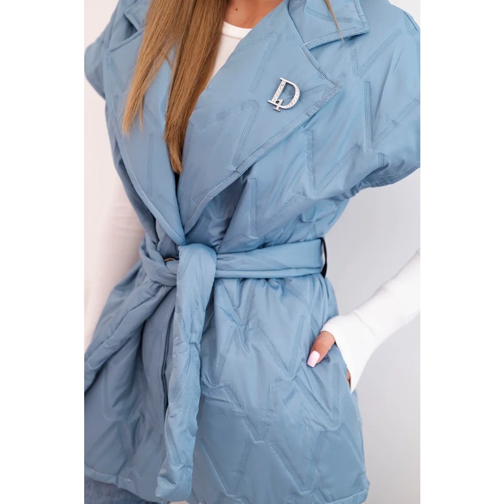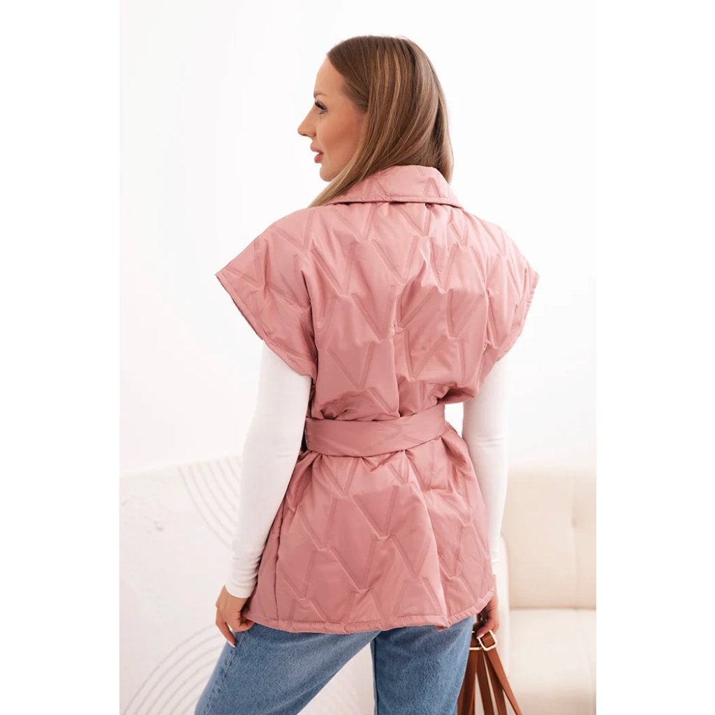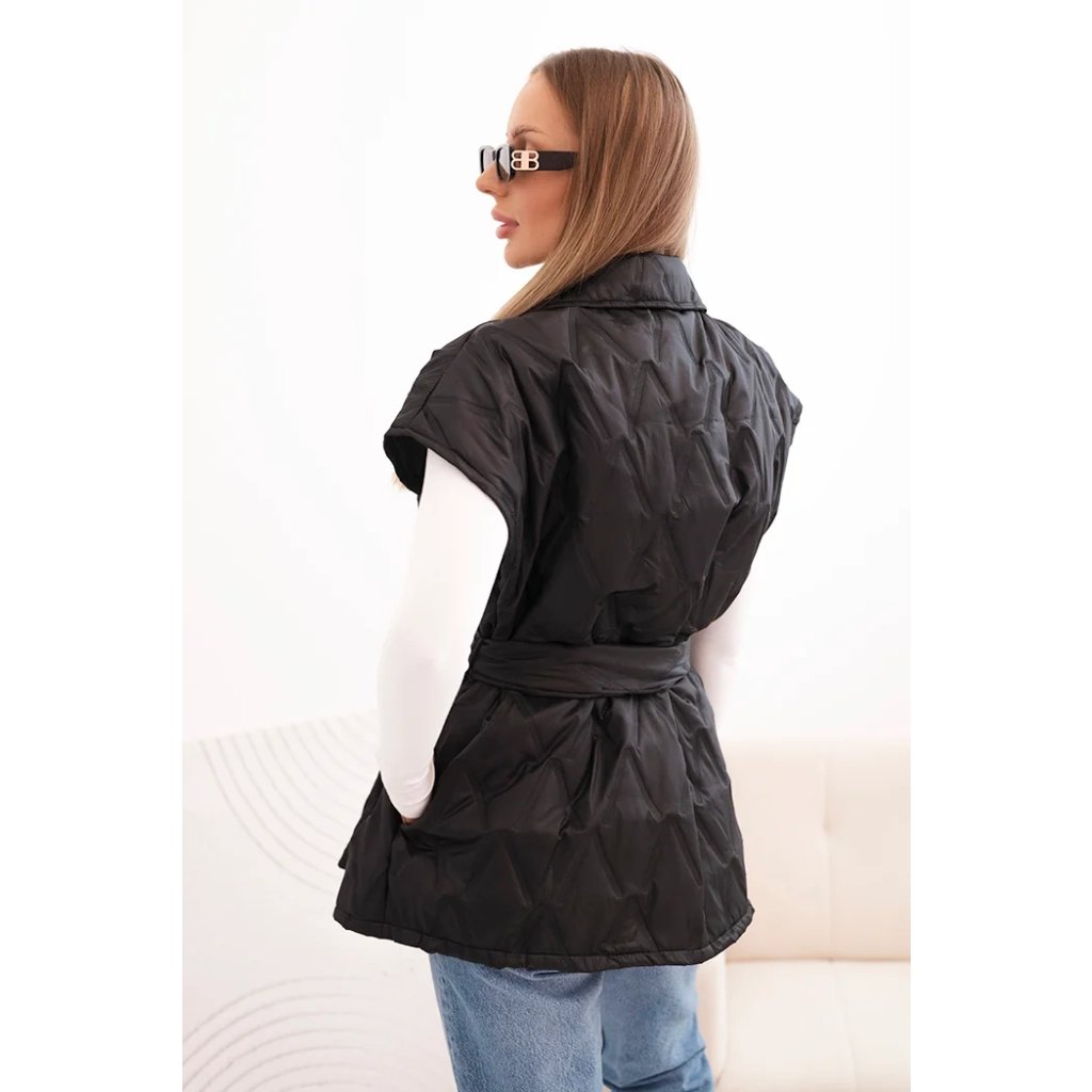 Dámská prošívaná vesta s páskem a širokým límcem Solid