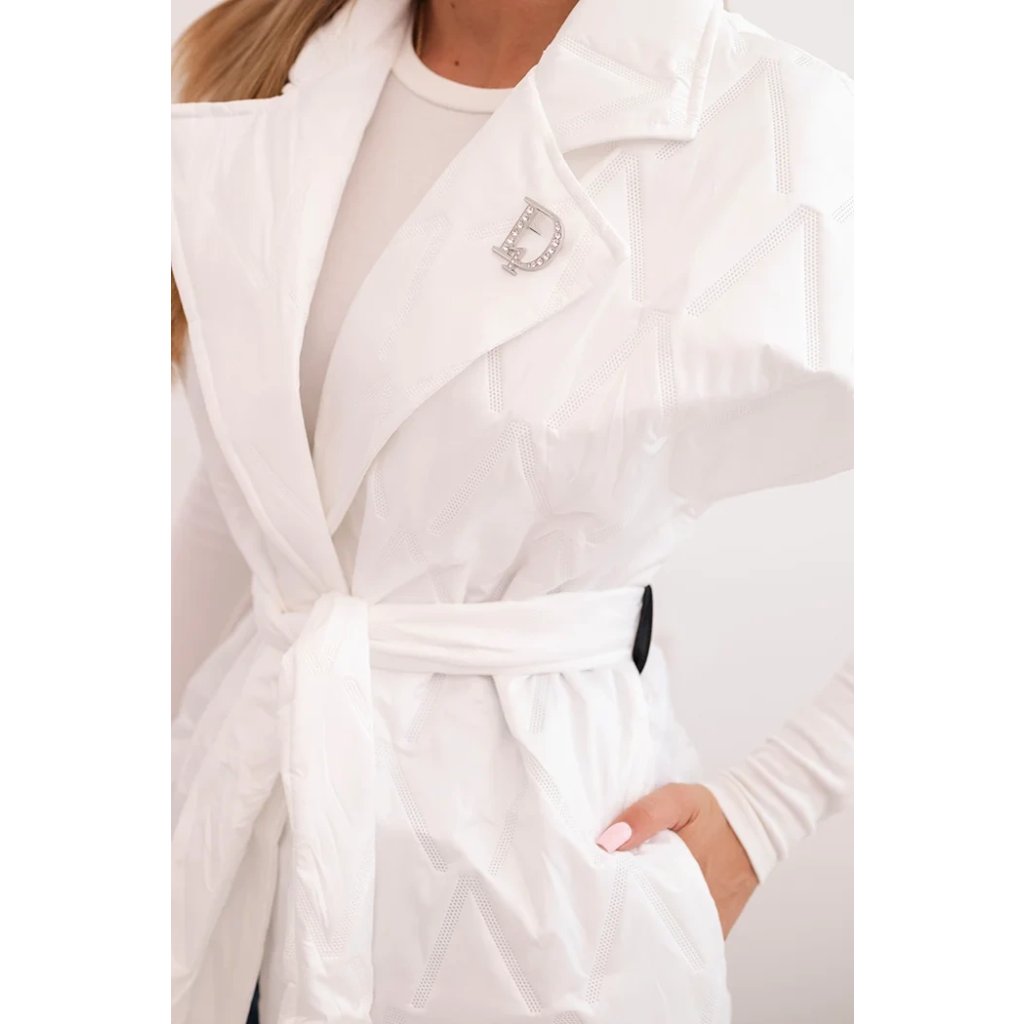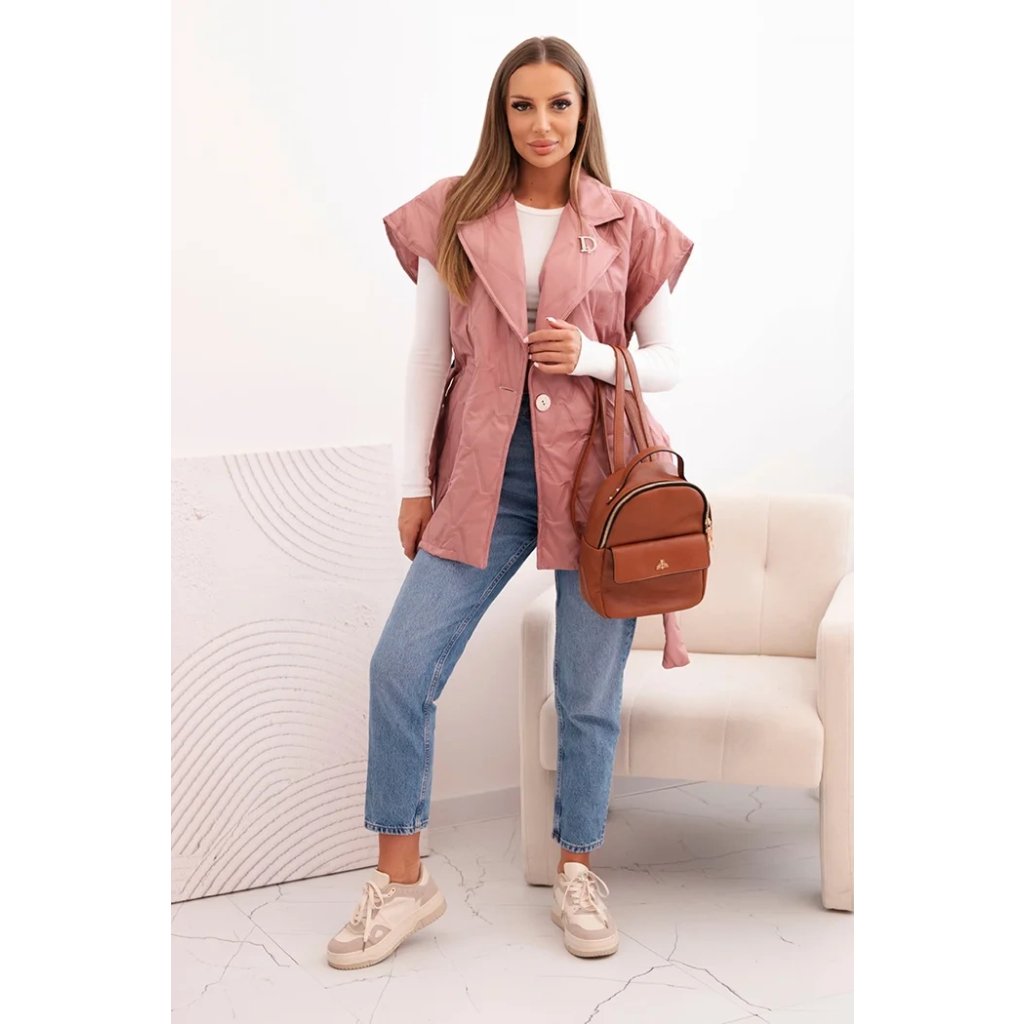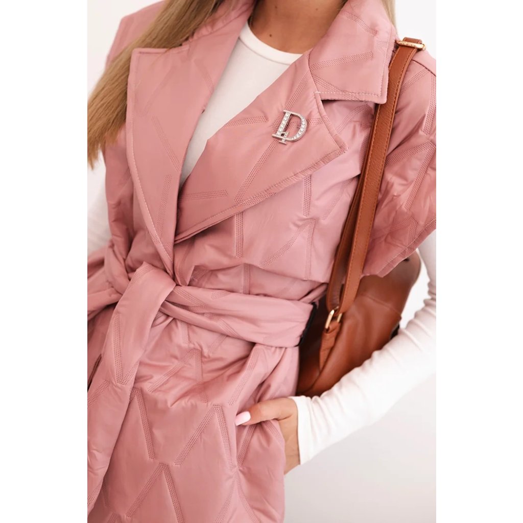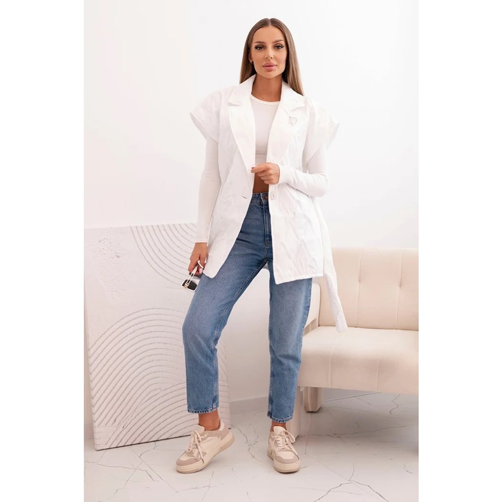 Dámská prošívaná vesta s páskem a širokým límcem Solid