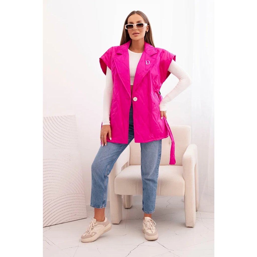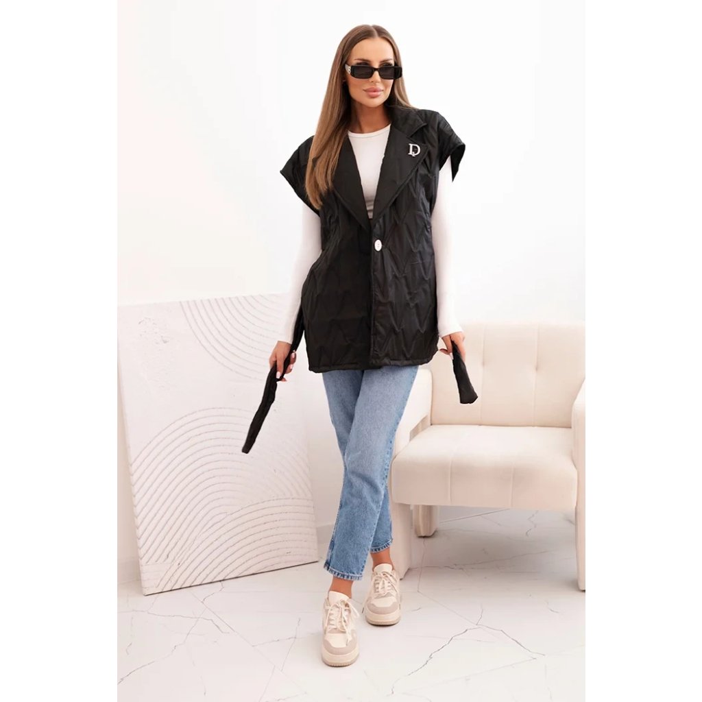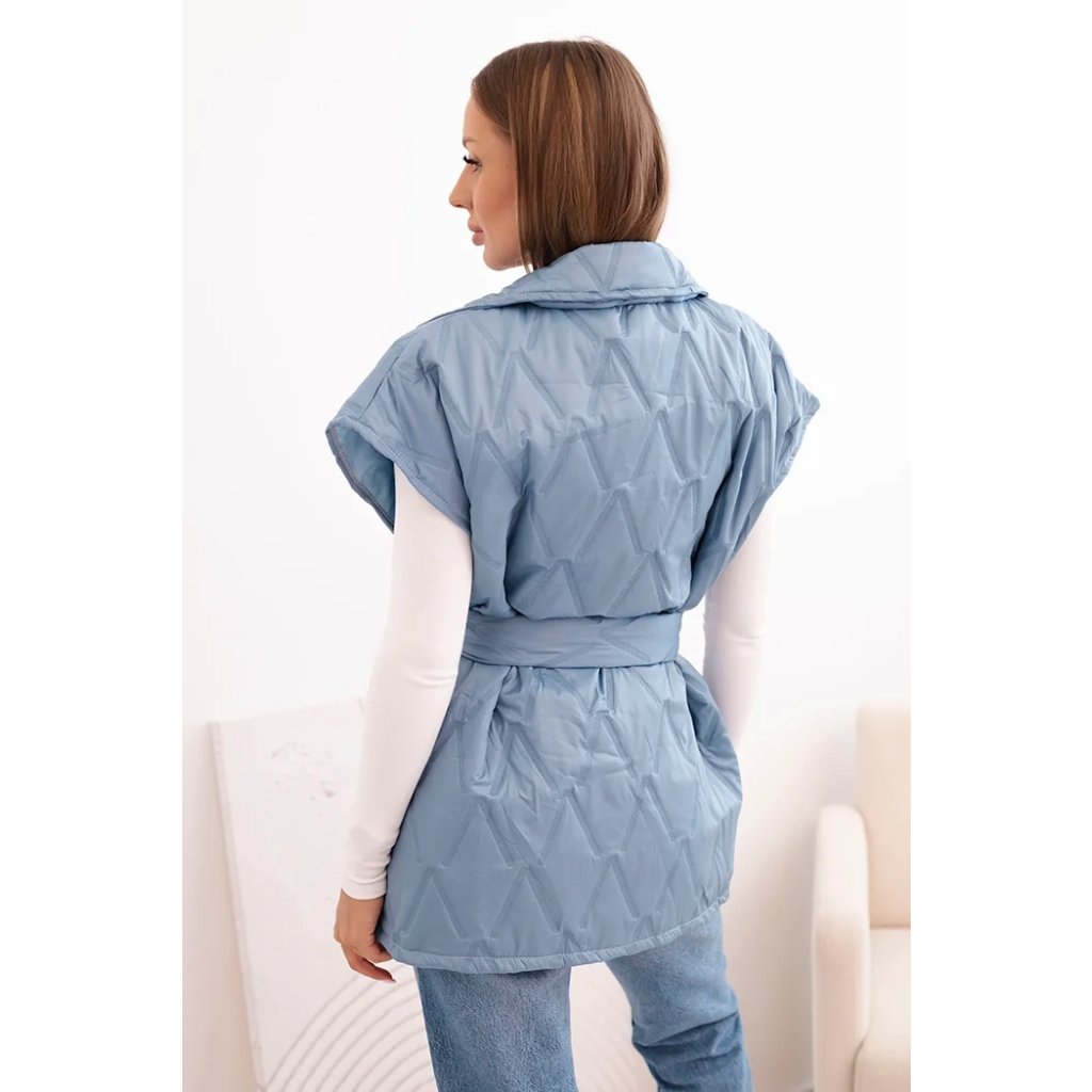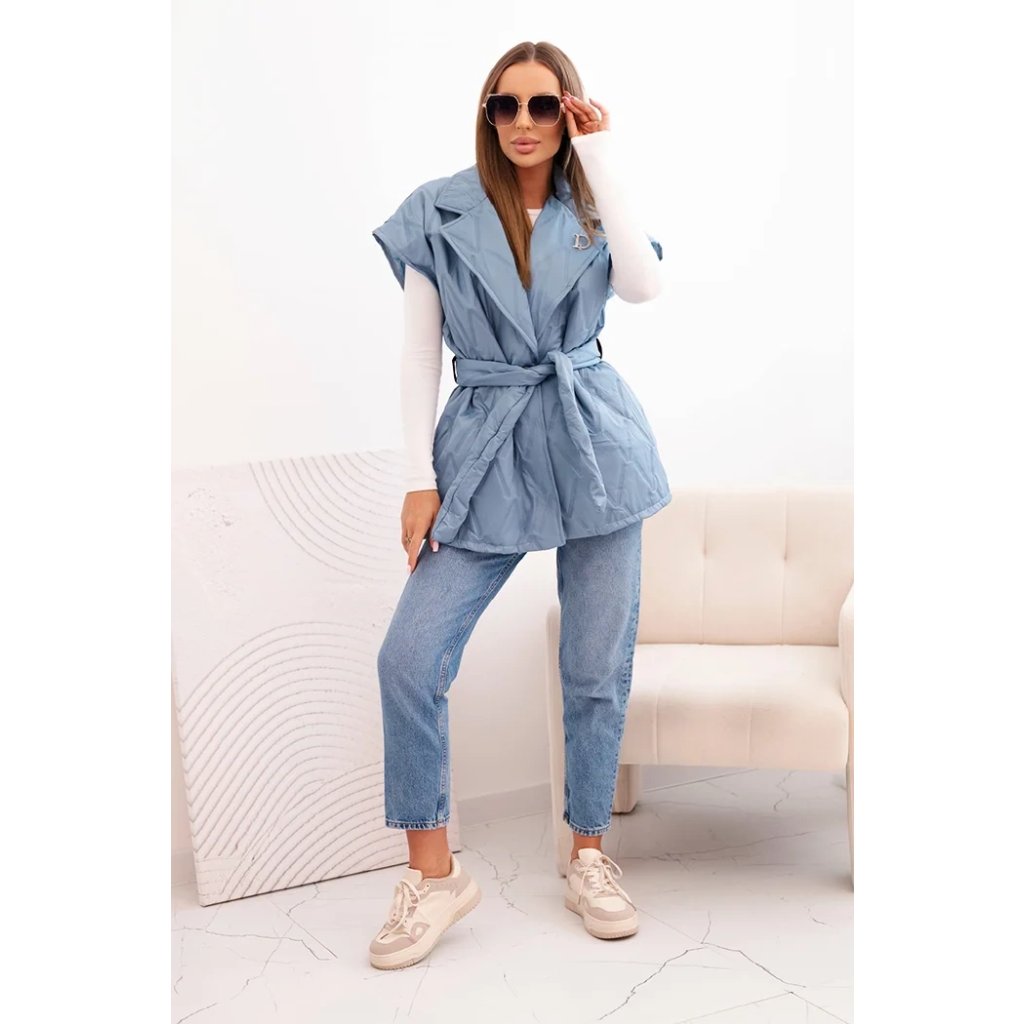 Dámská prošívaná vesta s páskem a širokým límcem Solid