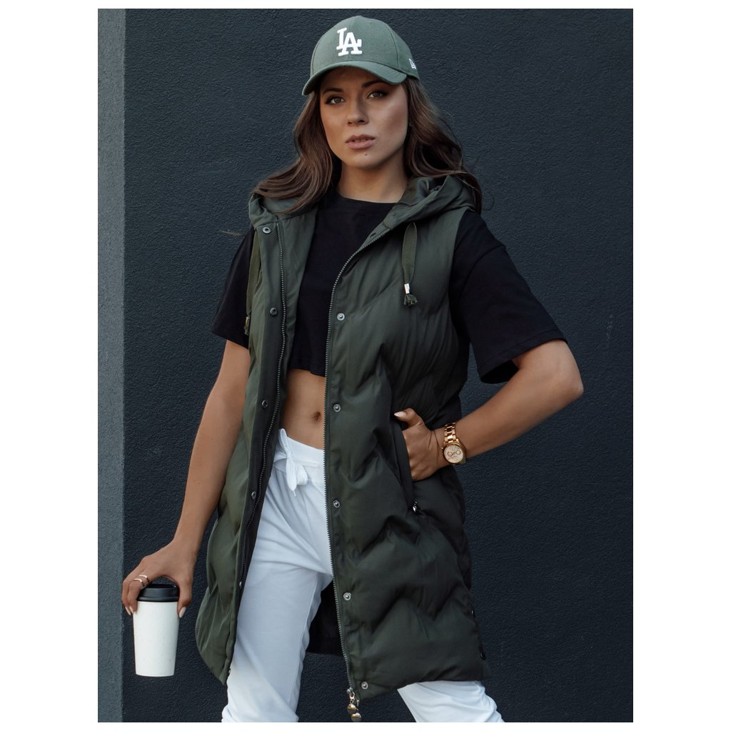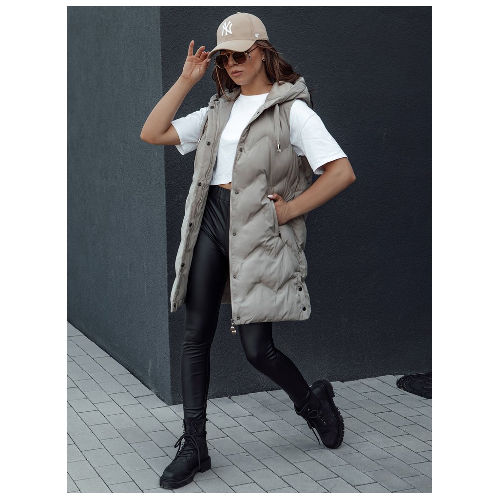 Tato delší prošívaná vesta je ideální pro chladné dny. Má velkou kapuci, dvě kapsy a druky ve spodní části, které slouží také jako dekorativní prvky. TAMIRA se perfektně hodí k teplákové soupravě a teniskám. K dispozici ve čtyřech barvách.