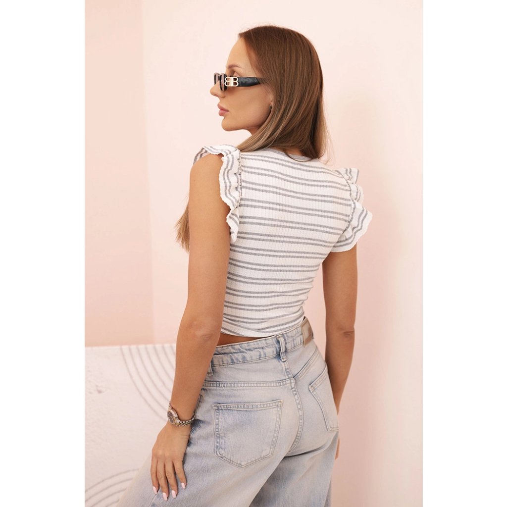 Dámská pruhovaná blůza se sklady a volánky Reto