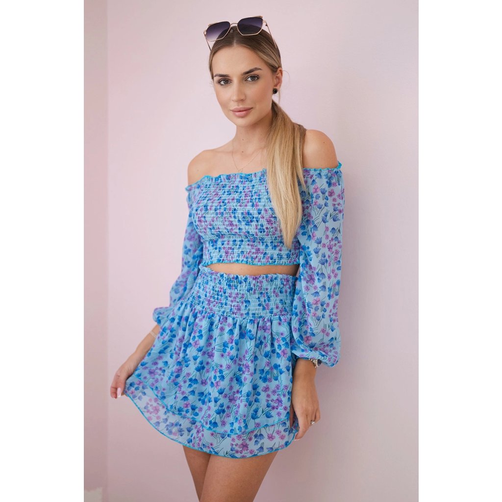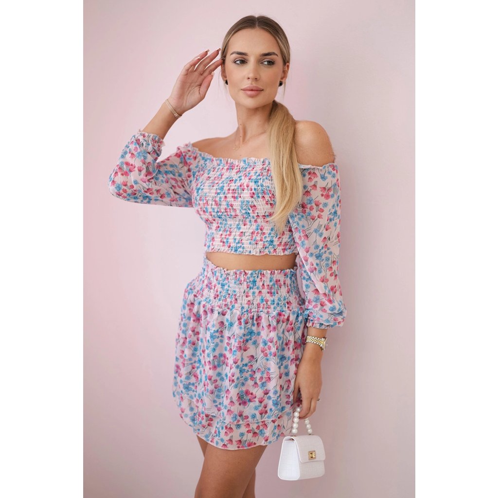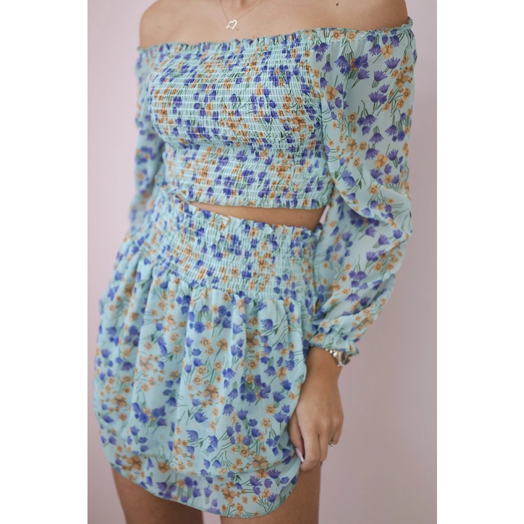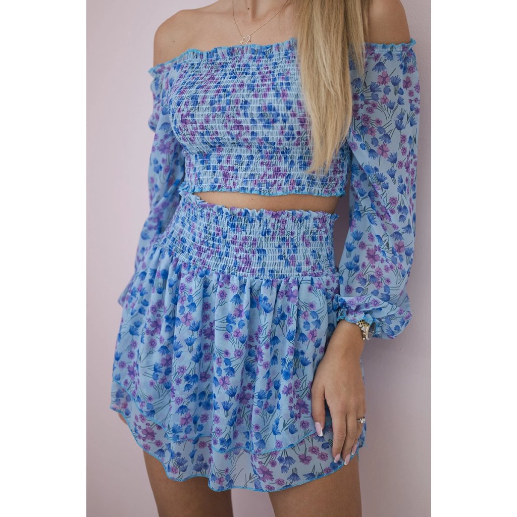 Představujeme vám sadu halenky a sukně. Halenka a květinová sukně. Sukně s volánky. Sada je vyrobena z vysoce kvalitního materiálu. Velikost je univerzální a vyhovuje dámám, které nosí velikost S, M nebo L.