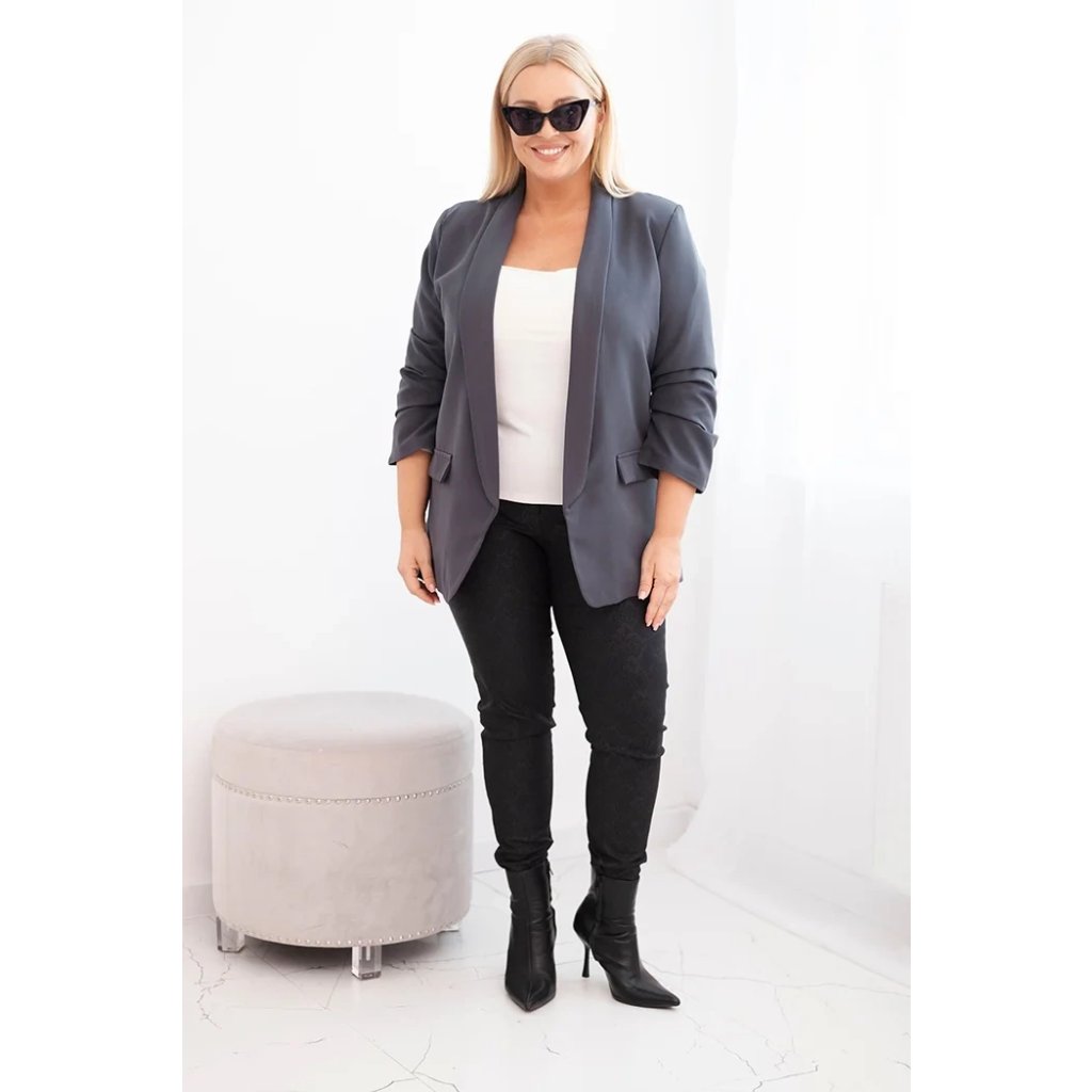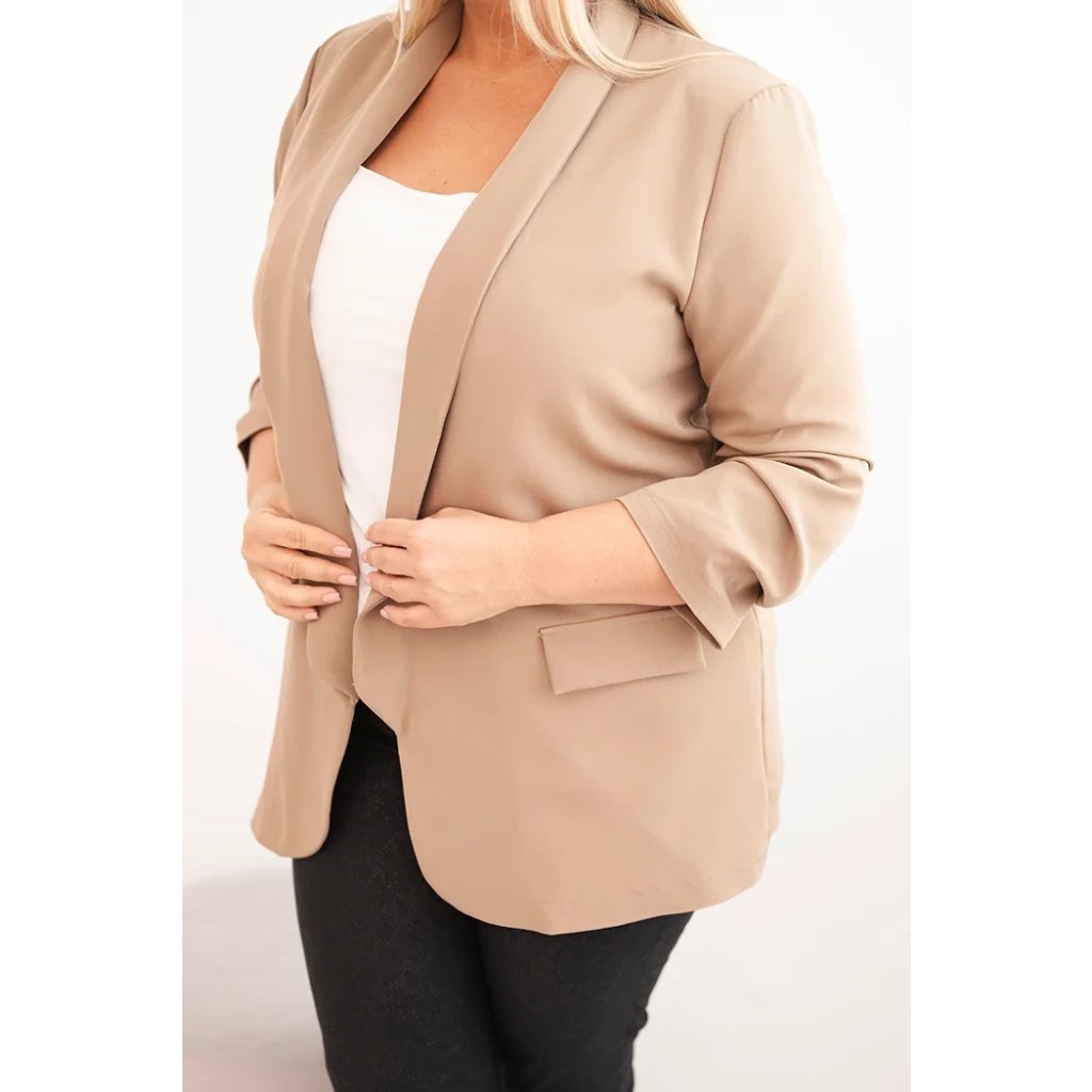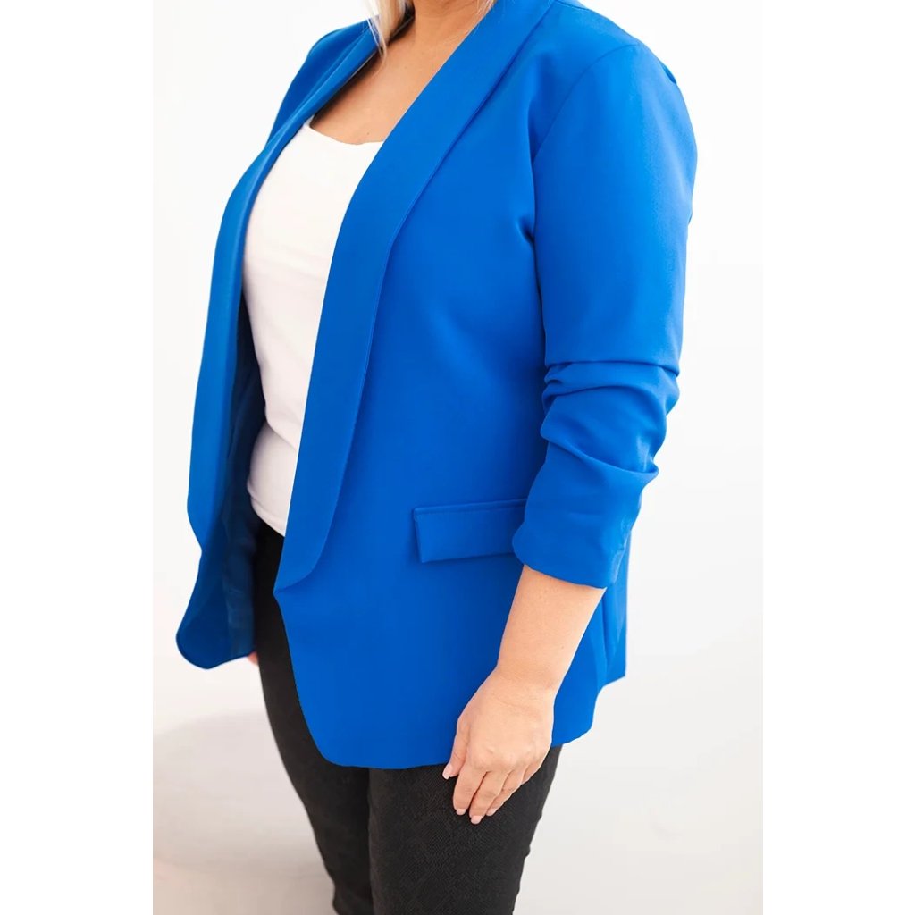 Elegantní dámská sako plus size je vynikající volbou pro ženy, které oceňují klasiku, pohodlí a styl. Model bez zapínání s jednoduchým střihem skvěle sedí na postavě, zakrývá nedostatky a zvýrazňuje ženské tvary. Jemná podšívka zajišťuje komfort nošení a délka zakrývající boky způsobuje, že sako vypadá velmi výhodně.